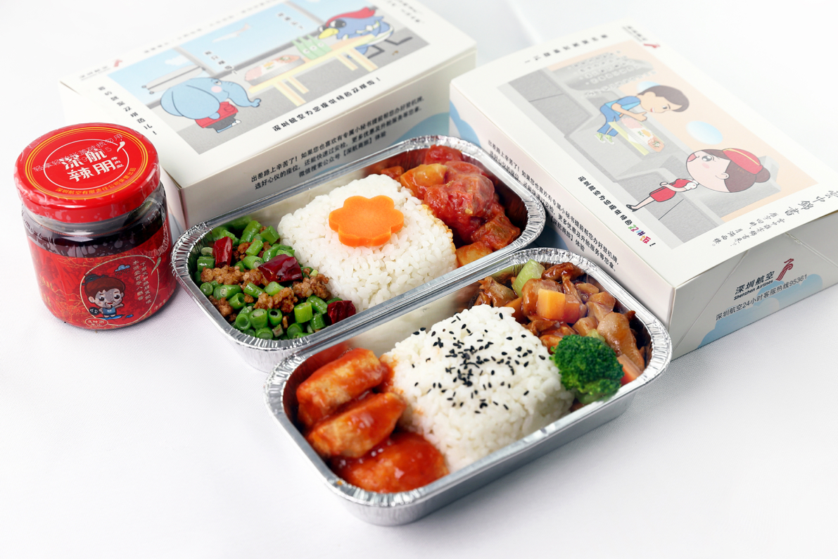 航班上的餐食服務亦有新亮點,國慶期間深航深圳、廣州、無錫出港的國內及國際航班上將繼續供應「雙拼飯」。一份餐食就有兩種選擇,雙拼飯提高了餐食單份克重,比原有餐食分量增加10%,數行業首創。葷素混搭,營養美味。此外,機上餐盒「雲中錦書」十月份也進行了全新改版,餐盒圖案設計結合深航卡通形象,以70周年大慶為主題,延啤線撕下還可得到一張精美的明信片。