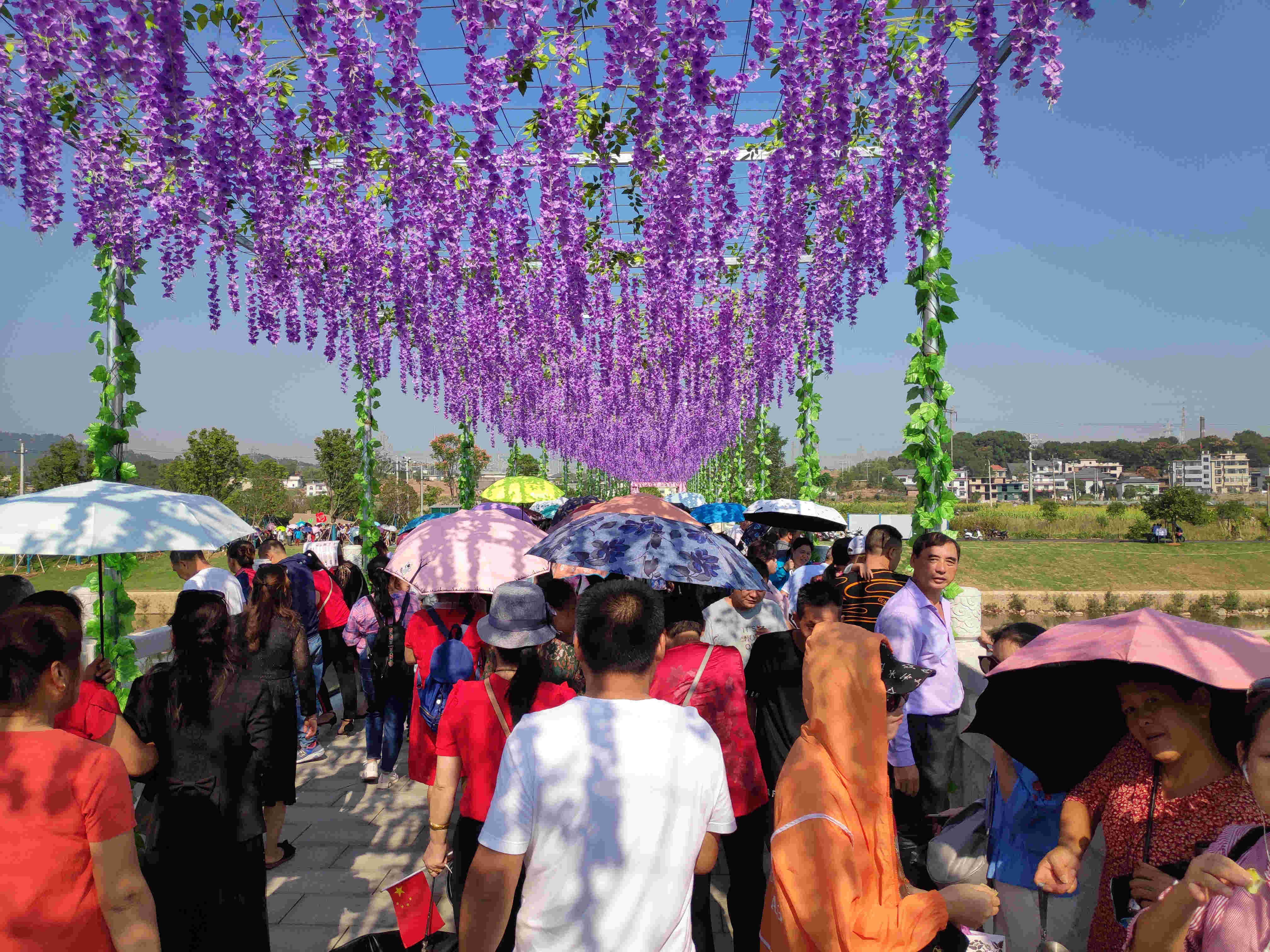 十里花溪是本次旅遊節的另一個主會場,也是五陂海綿小鎮「一帶一核四片區」中的「一帶」。十里花溪依託母親河五陂河,由東向西穿境而過,全長6公里,佔地80公頃,總投資3億元。岸上景觀主要由康體花園、精品花園、濕地花灣、坡地花海四大花園組成,設計包含櫻花跑道、五彩田、花間步道、花溪小築、花影茶莊等景觀,將於本次旅遊節後正式對外開放。這座荒野之上建成的濕地公園,已從美好藍圖變成現實畫卷,成為萍鄉市民觀光度假、休閑旅遊的「伊甸園」。