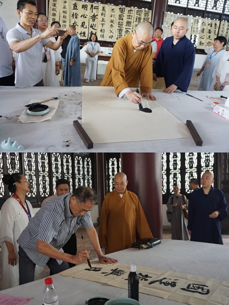 南華禪寺大和尚傳正法師和韶關書畫家現場潑墨揮毫