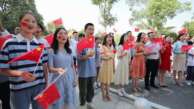 隨着現場氛圍逐漸濃厚,熱烈的氣氛迅速感染了,在場廣大幹群群眾紛紛揮舞起自己手中的小國旗,加入愛國歌曲大合唱的隊伍,一同放聲高歌,表達對祖國的無限熱愛。
