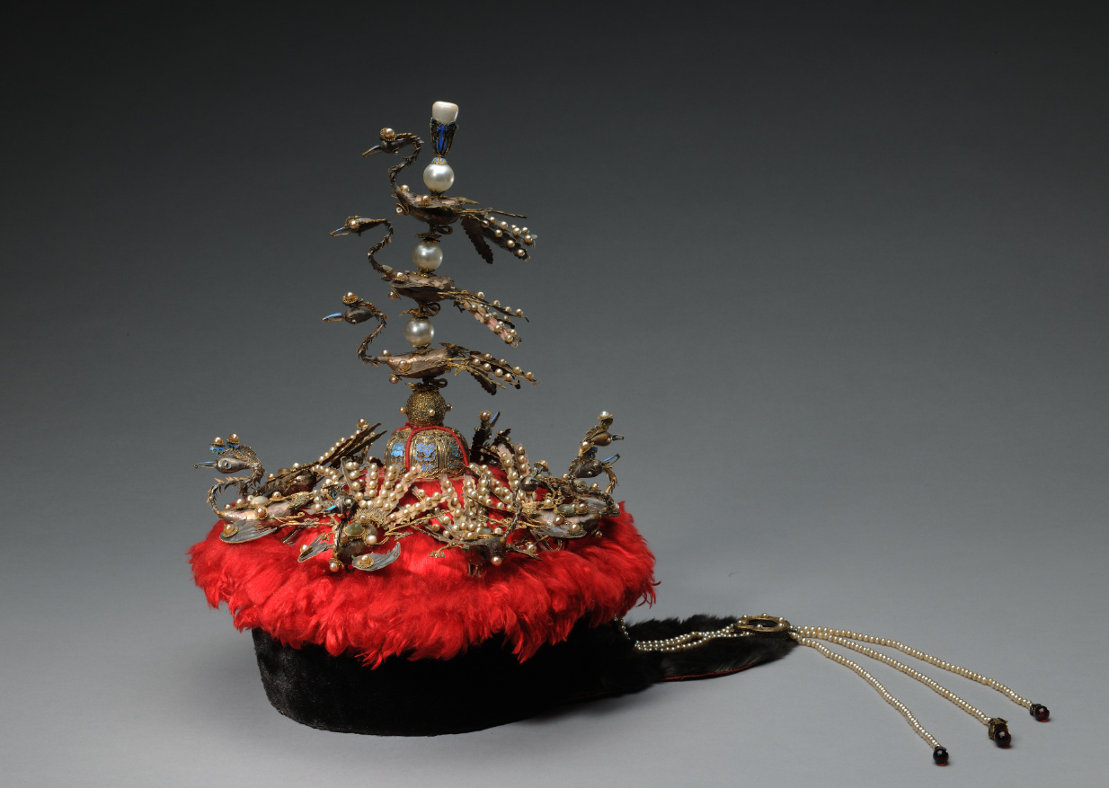 中院正殿即是重華宮,這裡最重要的一處所在就是「芝蘭室」,是十七歲的皇四子弘曆與十六歲的富察氏成婚後的新婚居所,兩人在此共度了九年的時光。富察皇后早逝後的48年里,乾隆每年除夕元旦都會來此少坐,追憶皇后懿德,回憶年輕時的美好歲月。展廳里,乾隆與富察皇后的巨大畫像下,帝後的朝冠靜靜放置,彷彿訴說著一段舉案齊眉的溫馨歲月。