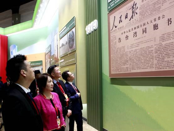 一個個歷史瞬間,一個個再現場景,勾勒出了新中國70年走過的壯麗畫卷。港澳台同胞、海外僑胞沿着編年體的時間線向前,在開國大典影像、50年代婚房、中國第一輛解放牌卡車、《告台灣同胞書》報紙資料,以及C919大飛機、港珠澳大橋等大國重器展品前駐足觀看,細細感受偉大祖國走過的偉大曆程和取得的輝煌成就。