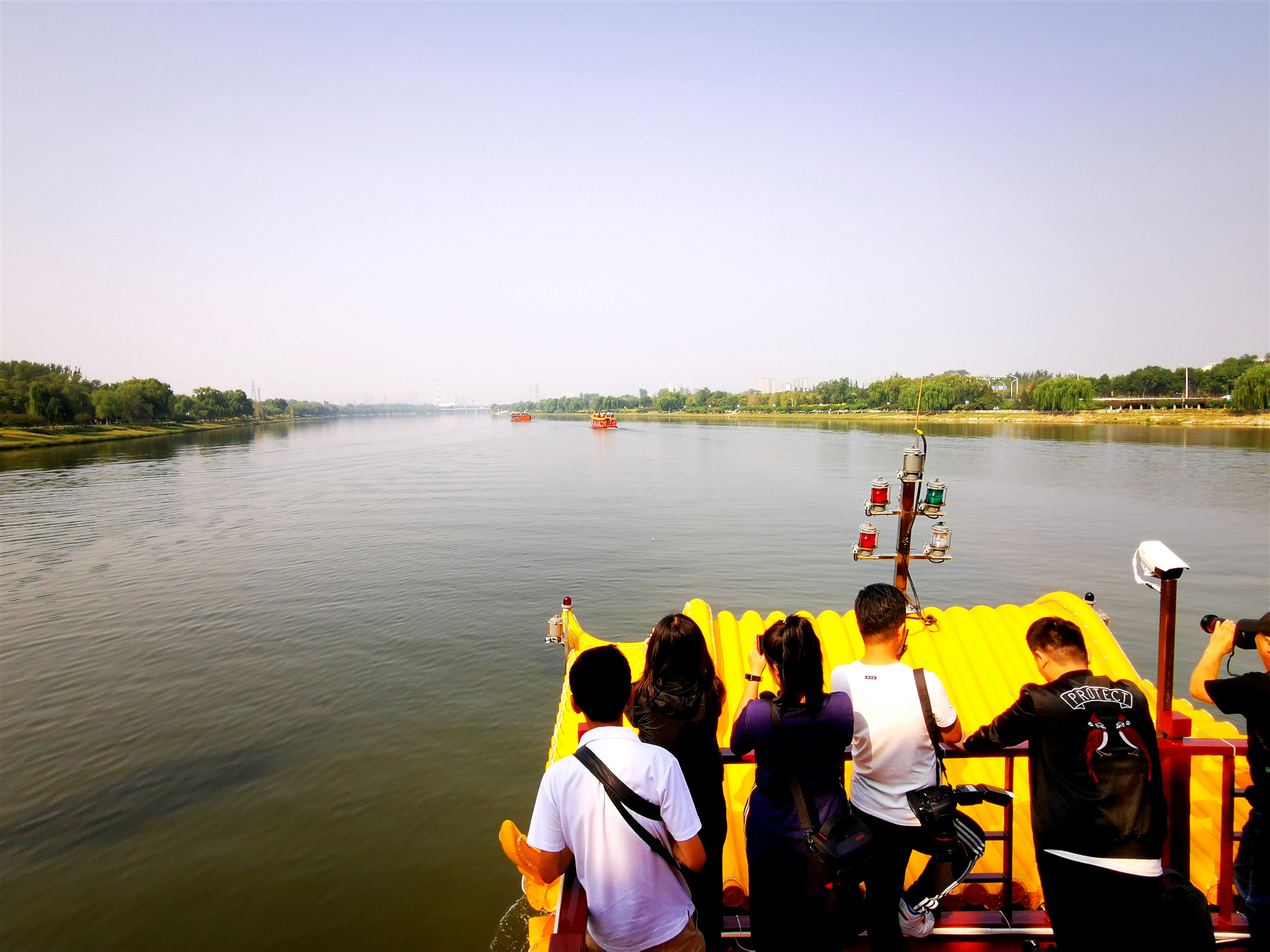 現場,隨着盧彥副市長「京杭大運河通州區城市段遊船正式通航!」的宣布,停靠在運河碼頭的遊船齊聲鳴笛。承載着運河兒女的深情笛聲劃破天際,大運河帶着新的歷史使命繼續流淌。