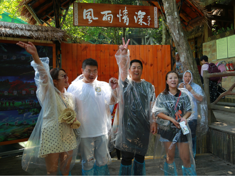 而送給遊客的雨衣和鞋套,就是避免遊客被風雨淋濕。同時,劇場還在觀眾席前安裝了防護杆,確保遊客安全,從硬核科技裝備到小細節完善處理,檳榔穀景區以貼心細緻的服務,讓遊客感受完美的沉浸式體驗。