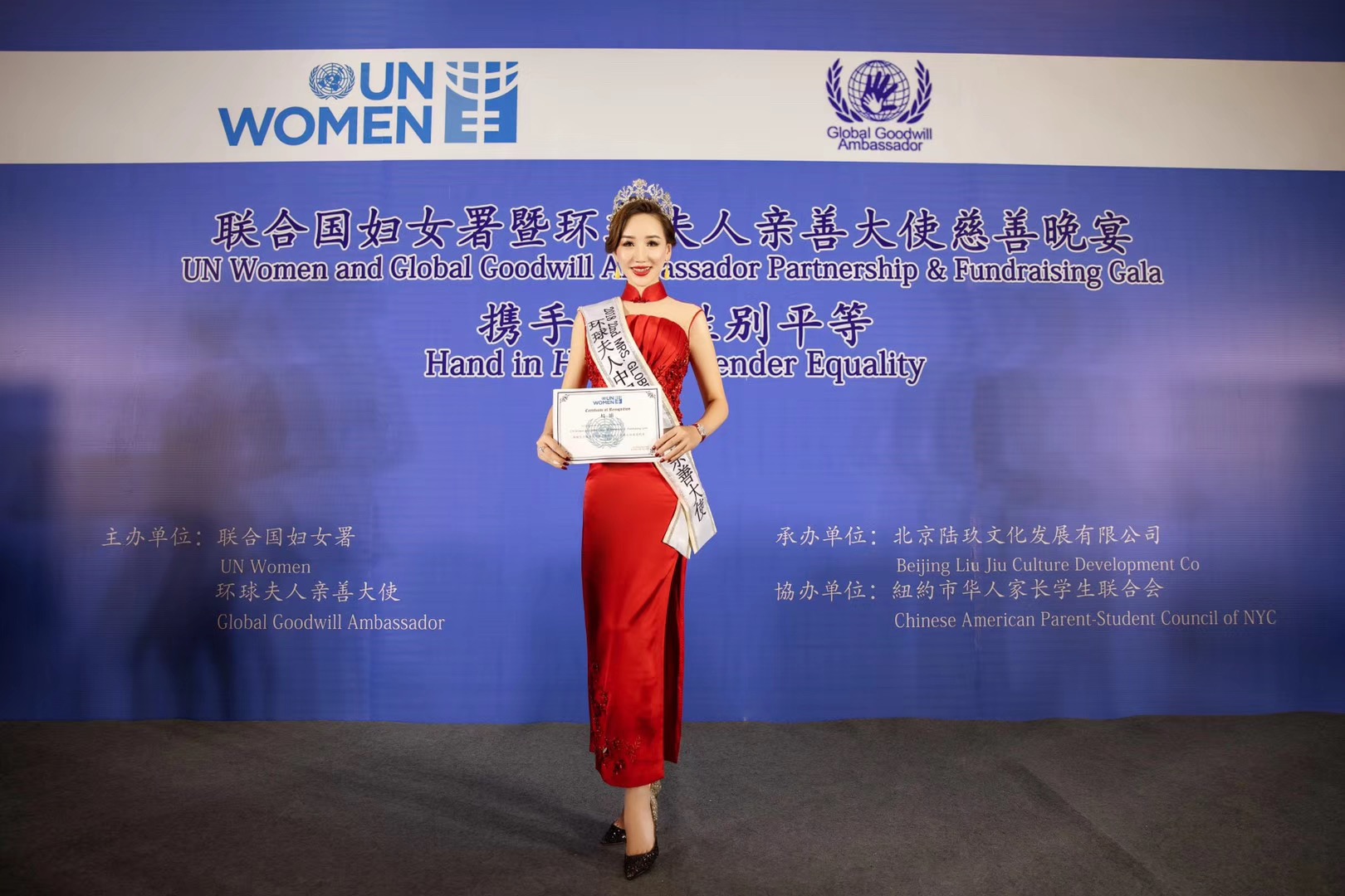 杜娟的眼光,杜娟的情懷,也讓她贏得了事業的成功。2018年12月6日,由聯合國婦女署主辦的「攜手共促性別平等」為主題慈善募捐活動在北京舉行。在活動中,道寧集團執行董事、環球夫人杜娟女士榮獲「環球夫人親善大使」榮譽。
