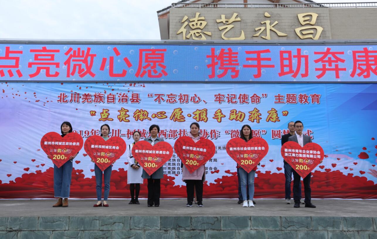 【香港商報網訊】10月14日,在四川绵阳北川羌族自治縣「不忘初心、牢記使命」主題教育——「點亮微心愿·攜手助奔康」,2019年北川—柯城東西部扶貧協作「微心愿」圓夢儀式中,困難群眾淳樸而簡單的「微心愿」被一一點亮,傳遞了來自浙江衢州市柯城區的愛心力量。