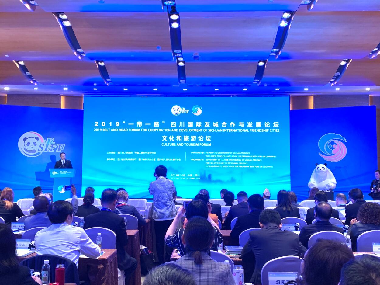 據悉,該論壇是2019「一帶一路」四川國際友城合作與發展論壇的專項分論壇,吸引了16個友城10名省州長和52名外賓參會,是我省深入貫徹習近平總書記在第二屆「一帶一路」國際合作高峰論壇上的重要講話精神,全面落實省委「四向拓展、全域開放」重大部署的務實舉措,推動四川更好地融入「一帶一路」建設,加強四川省以及省內城市與其國際友好省州(城市)間在文化和旅遊領域內的交流與合作。