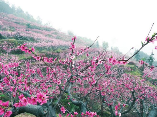 響岩鎮清水村種植的大片桃樹(蒲鵬程 攝)