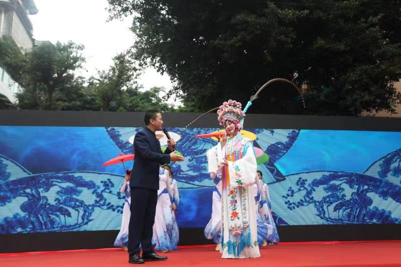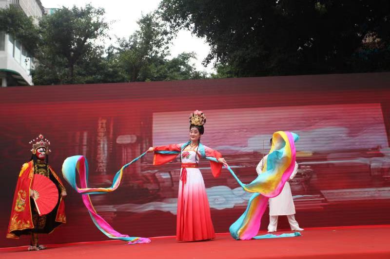 當天下午,肖家河正街廣場上十分熱鬧。隨着音樂響起,非遺活動演出正式開始,戲曲舞蹈《誰說蜀道難》拉開了序幕,音樂快板《蓋碗茶》、竹琴《竹鄉茶館》、樂器演奏《巢和新聲》等節目充分展示了我國傳統樂器的特色;戲曲《天府蜀韻》讓現場群眾感受到了四川文化的魅力;木偶表演《絢麗木偶秀》體現出非遺傳承人高超的技藝,最後,演出在《我和我的祖國》合唱歌聲中畫上圓滿的句號。演員們精彩的表演充分展示了中華傳統文化,給現場群眾帶來了一場內容豐富的非遺文化盛宴。