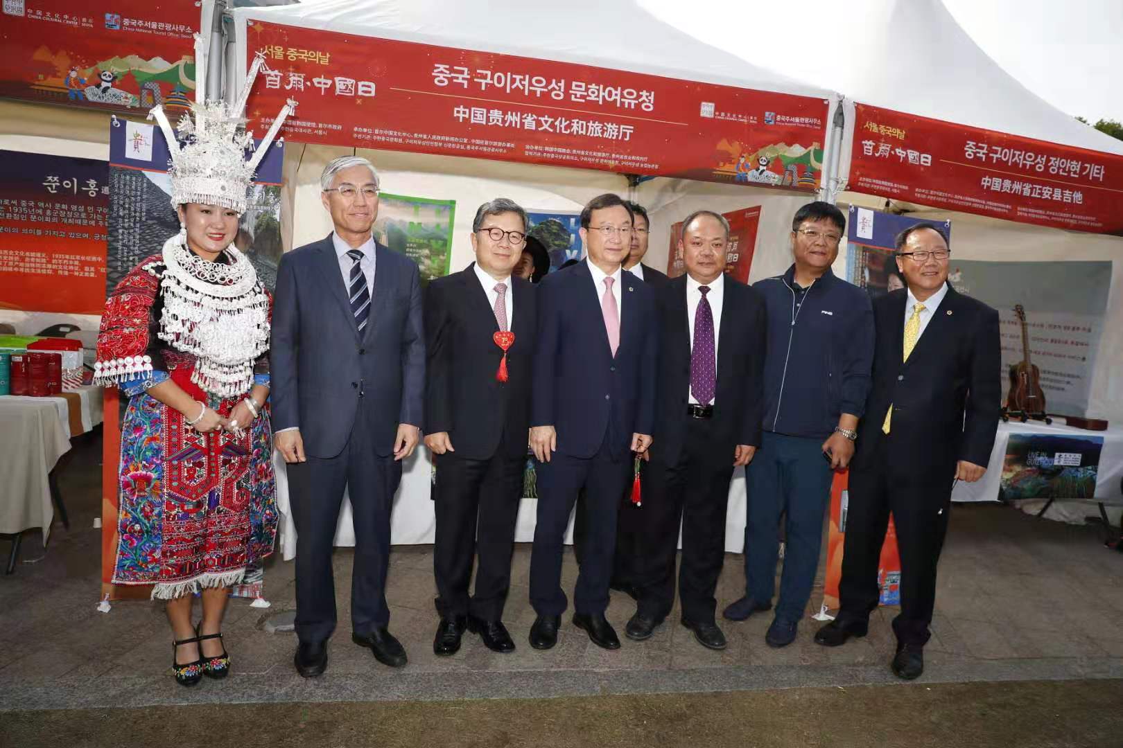 中國駐韓國大使邱國洪、首爾市政府副市長陳熹善、首爾市議會副議長朴其烈、貴州省委宣傳部副部長柳盛明、貴州省文化和旅遊廳巡視員黎盛翔等貴州團代表以及韓國有關文化團體負責人、首爾市民、華人華僑和各國遊客數千人參加了當天的活動。