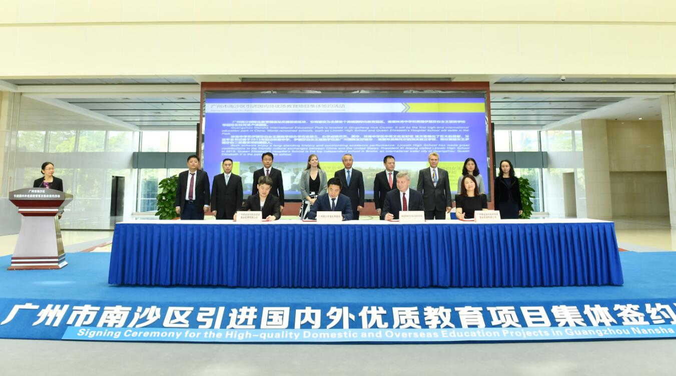 本次簽約的六個項目包括1所委託市屬教育集團管理的公辦學校、6所國際化程度較高的民辦學校和2所外籍人員子女學校等9所學校,是南沙區在引進優質基礎教育資源方面的又一重大舉措。其中,廣州市執信中學南沙學校選址南沙區進港大道,為9年一貫制區屬公辦學校,設置54個班,佔地約83畝,招生規模為2520人。美國林肯中學和英國伊麗莎白女王醫院學校兩所民辦學校將落戶廣州南沙國際化教育園。廣州恆鑫斯坦福實驗學校選址慶盛樞紐片區,為12年一貫制民辦學校,將提供3000個優秀基礎教育學位。