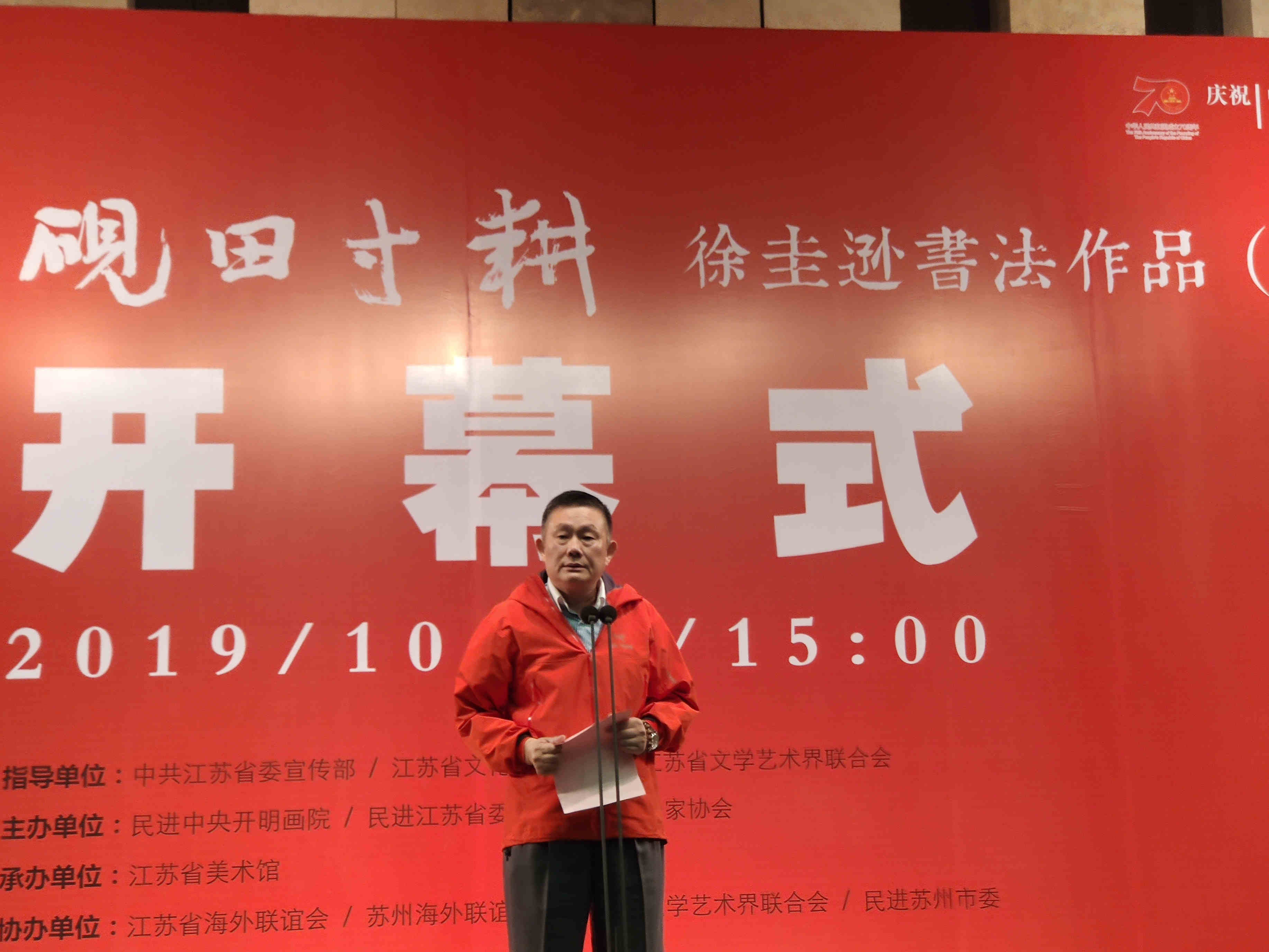 【香港商報網訊】2019年10月25日,「硯田寸耕」徐圭遜書法作品(南京)展在江蘇省美術館新館開幕。40餘幅徐圭遜先生近年創作的書法作品亮相。各界領導、專家和來自全國各地的書法界同道共300 餘人參加開幕式。這是繼2017年9月香港展後,徐圭遜的書法作品首次以大型個人作品展覽的形式呈現於眾。