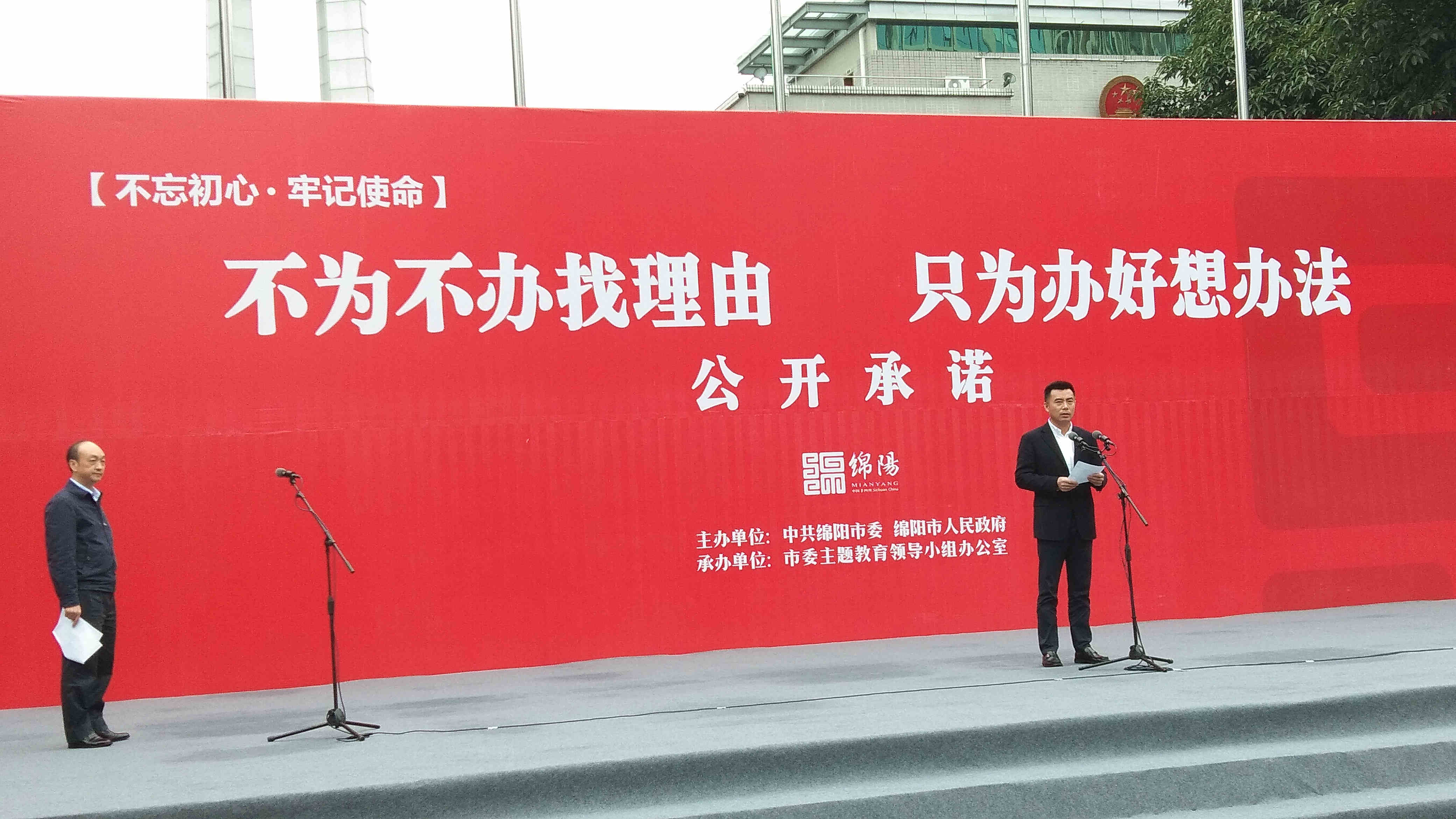 【香港商報網訊】10月25日,四川省綿陽市舉行「不為不辦找理由、只為辦好想辦法」公開承諾活動。活動旨在認真落實中央、省委、市委關於「不忘初心、牢記使命」主題教育的安排部署,做實「不為不辦找理由、只為辦好想辦法」載體,縱深推進全市「抓落實作表率」行動,推動全市廣大黨員幹部和全體公職人員守初心、勇擔當、善作為,着力營造良好的營商環境和高效的政務環境,為加快建設中國科技城和西部現代化強市貢獻力量。