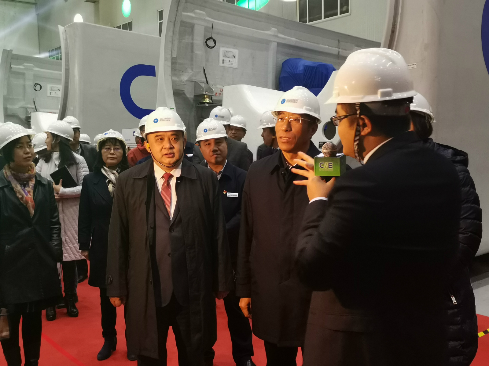工作人員講解風力發電機組設備組件