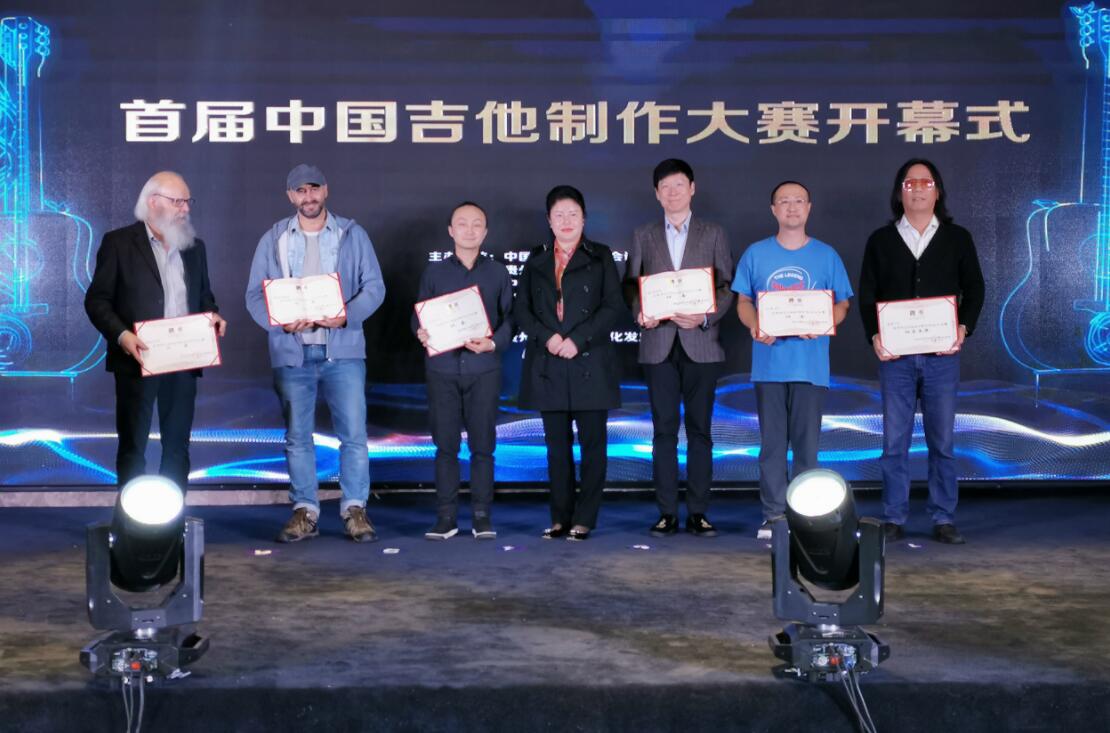 遵義市人大常委會副主任、正安縣委書記鄧兆桃在會上為高君、何青、方翊、任強以及來自美國的PhillipJarrell(菲利普·賈瑞爾)、西班牙的AlbertoCuellar(阿爾博托·庫樂)、德國的WolfgangTeller(沃爾夫岡·泰樂)頒發了大賽評委聘書。領導嘉賓共同按動開幕式啟動球,正式啟動首屆中國吉他製作大賽的開幕式。