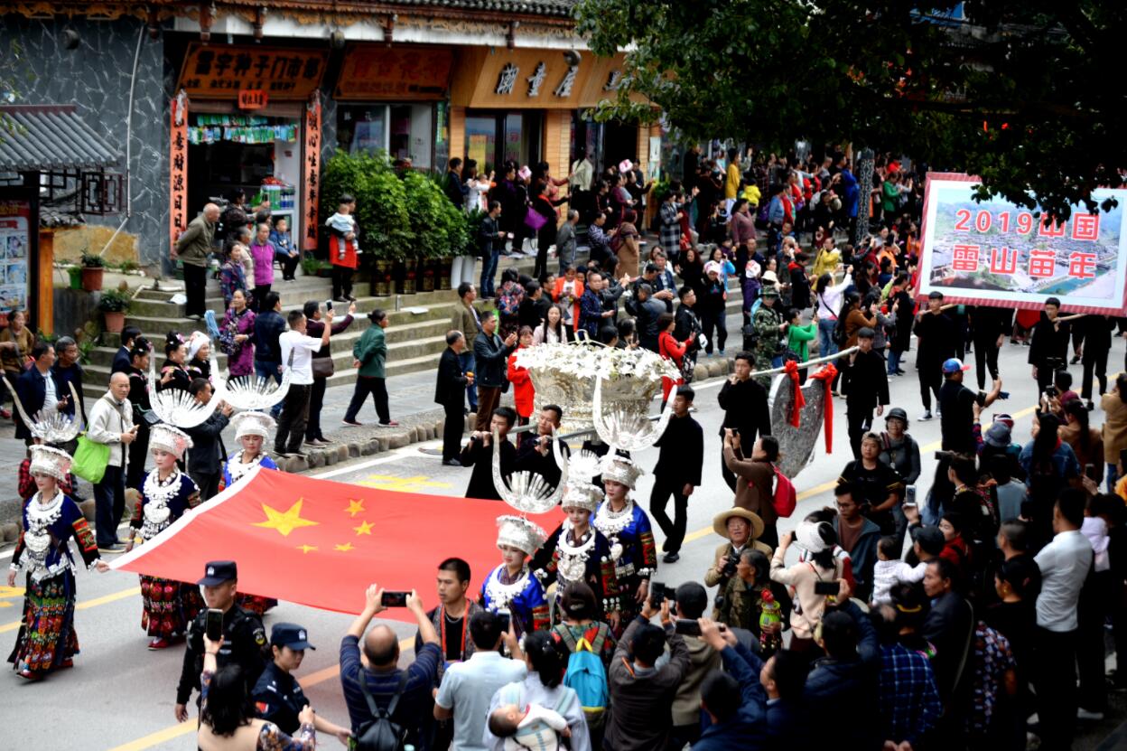 當天下午13時,巡遊正式開始,雷山縣脫貧攻堅成果與13項「國家級非物質文化遺產」一一亮相街頭,每一個獨具特色的方陣都讓前來觀看巡遊的市民和遊客嘆為觀止。隨着巡遊隊伍陸續抵達縣城銅鼓廣場,巡遊活動圓滿結束,另一場極具苗族文化特色的歌舞展演拉開帷幕。