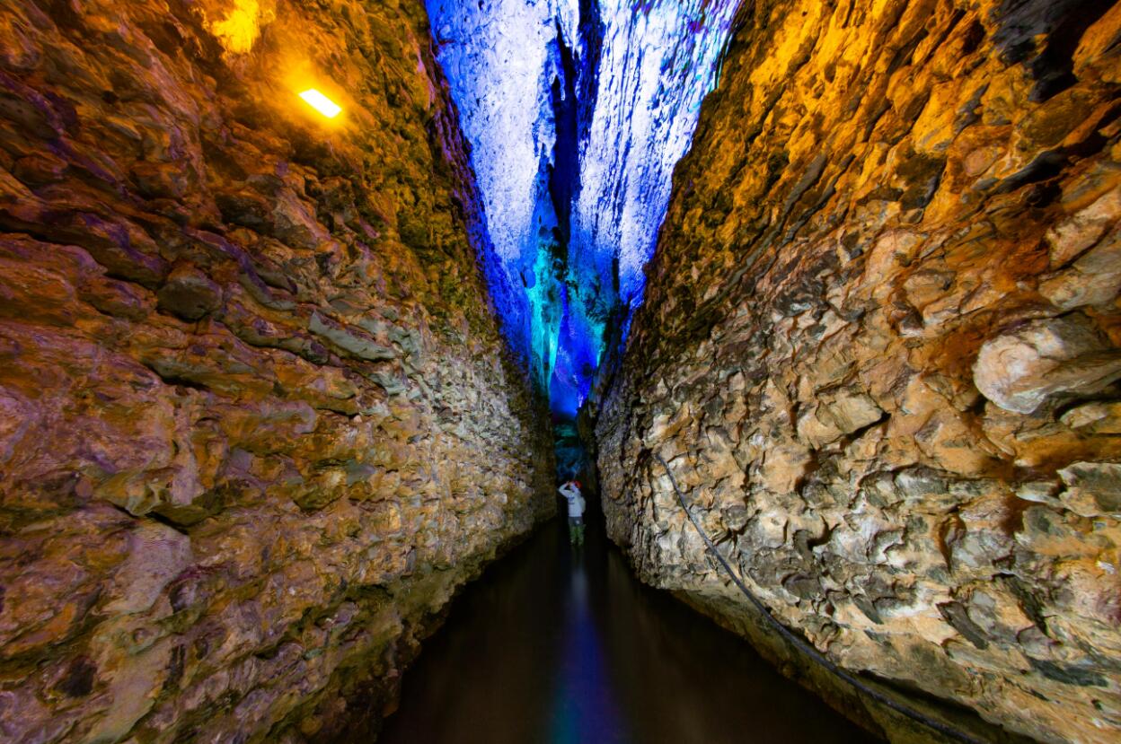 景區負責人周現金介紹說,溶洞整體位於石灰岩山體內部,洞道上寬下窄,狀如「峽谷」,所以形象地被稱作「地心大峽谷」。遊覽溶洞的方式為從上洞口進入,全程涉水徒步穿越,一些攝影愛好者帶上設備、水和乾糧經常能在洞內逗留超過3小時。