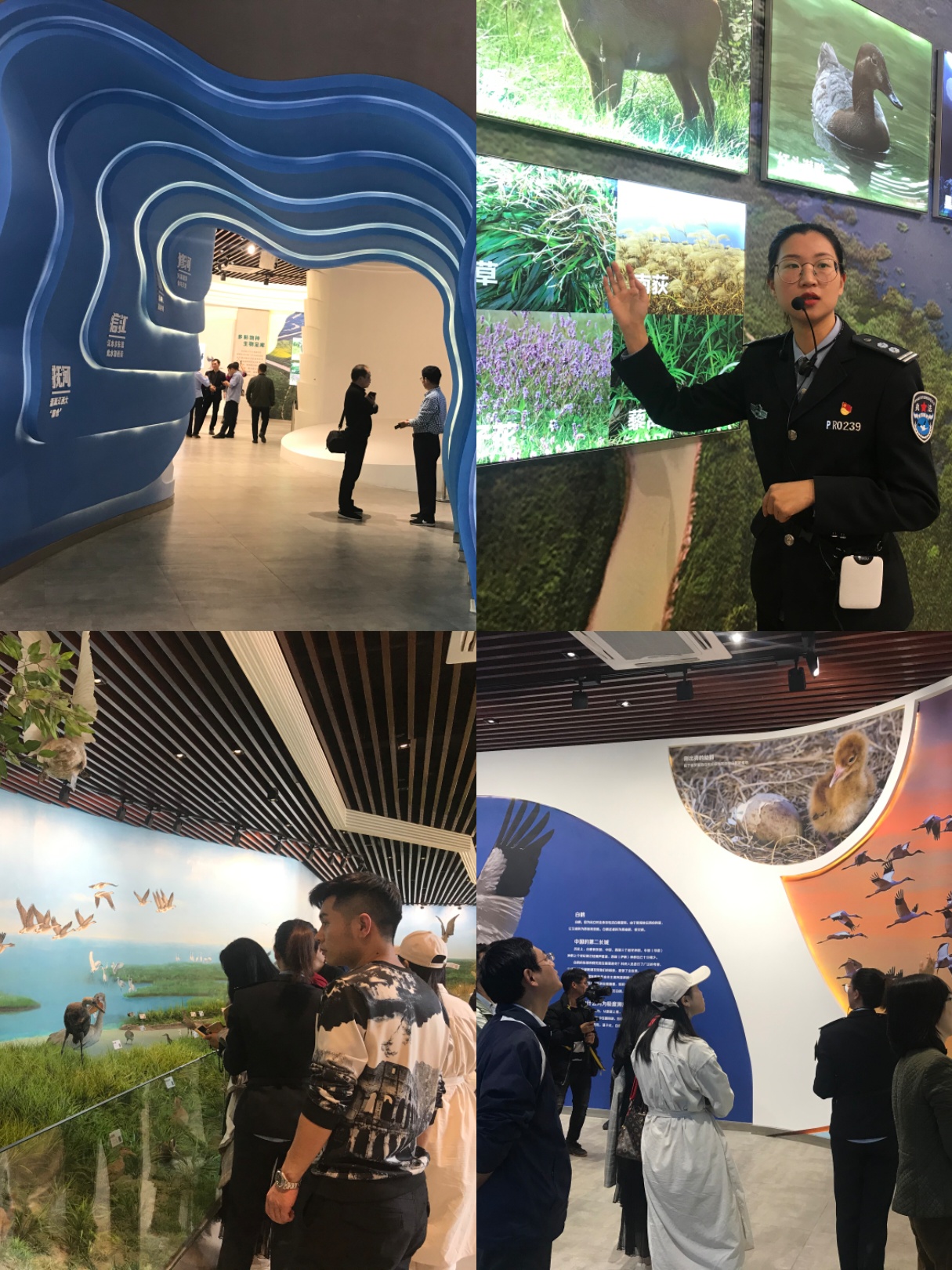 在吳城保護管理站,採風團參觀了全省首個最全面展示生態環境的鄱陽湖濕地和候鳥宣傳教育中心,該中心通過文圖展板、全息影像、白鶴標本等全方位向來訪者展示併科普候鳥的遷徙情況及鄱陽湖濕地四季變換歷程,讓來訪者充分了解鄱陽湖生態、歷史、人文情況;同時,還將傳統展示與現代科技相結合,在展出大量影像資料和實體標本的基礎上,運用互聯網+、VR、AR等手段,強化互動性和參與性,讓來訪者能夠親身體驗鄱湖生態美景,營造出濃厚的生態科普氛圍。