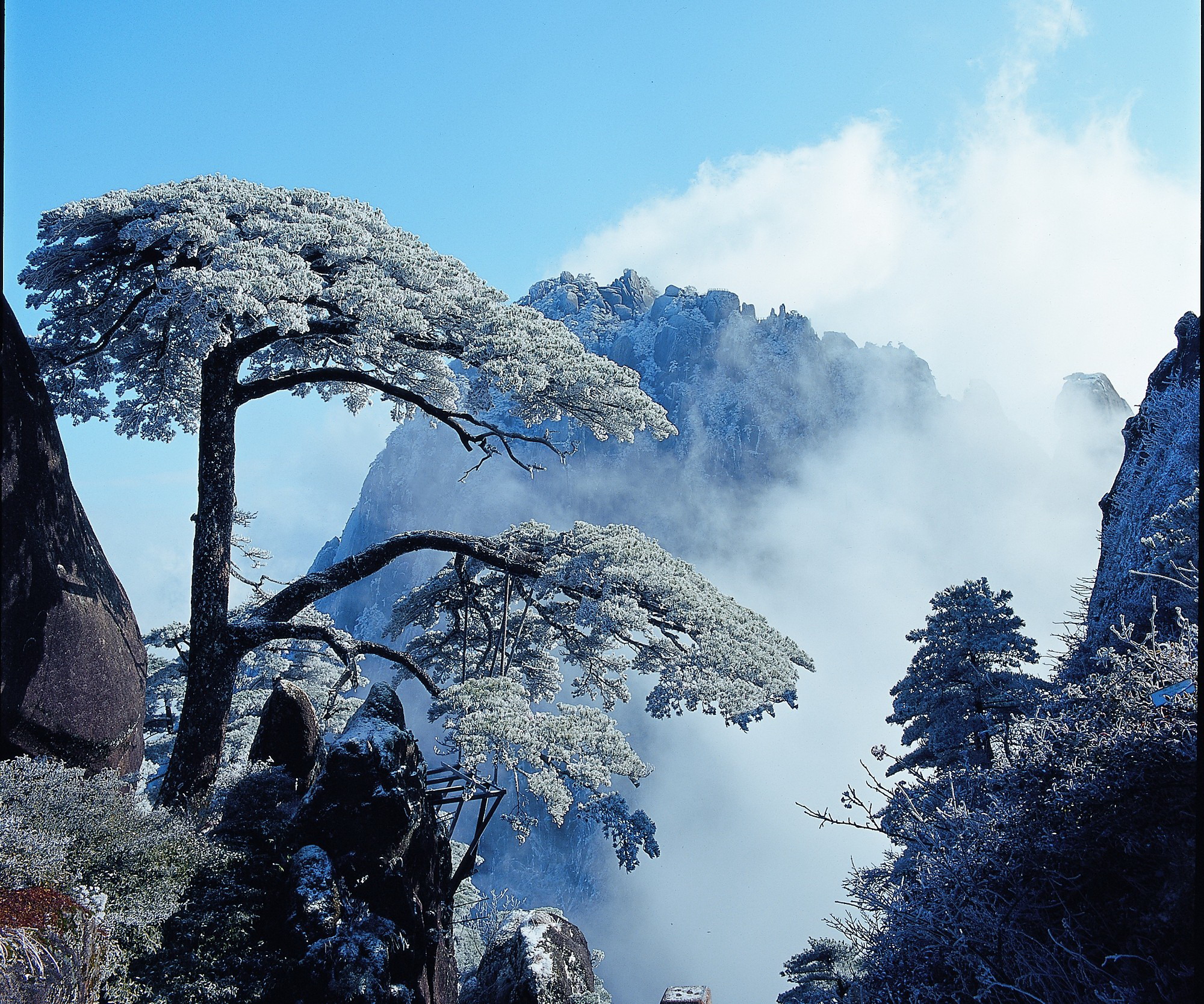 每年冬季,黃山將呈現唯美日出、夢幻雲海、風韻冬雪、絕美霧凇等多個看點。黃山四季皆勝景,唯有冬景景更佳。冬雪是黃山“五絕”之一,每到雪季,皚皚白雪,遍鋪峰巒,處處銀妝素裹,冰雕玉砌, 置身其間, 仿佛進入撲朔迷離的冰雪王國。
