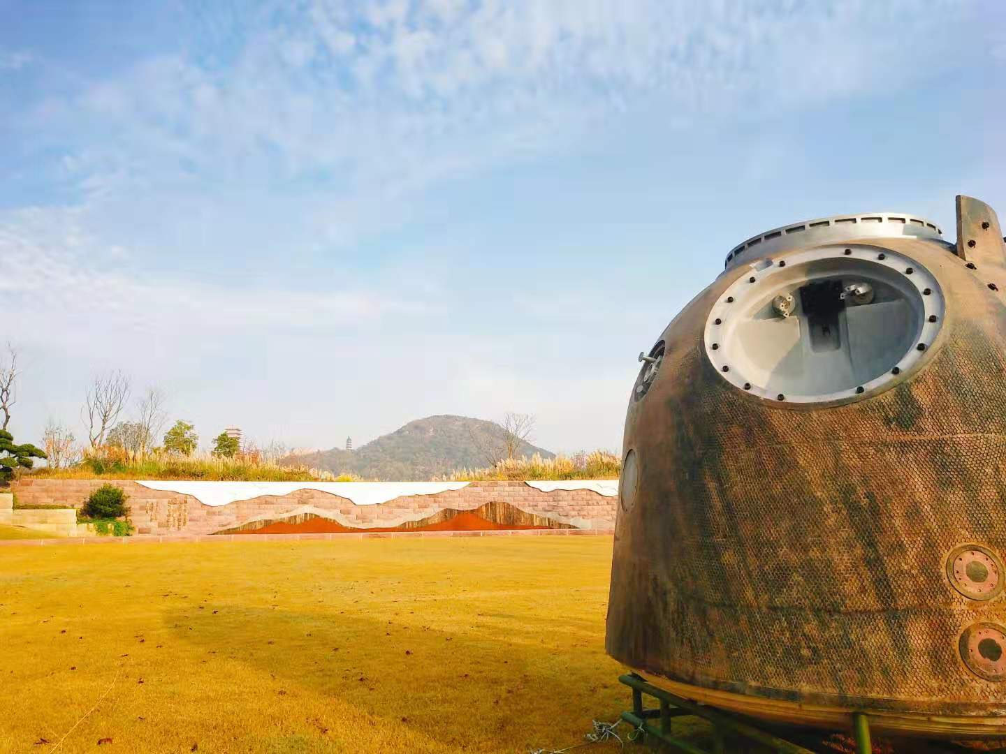神州十一號飛船返回實驗艙、長征二號F火箭整流罩提前亮相牛首山,為即將開幕的科幻電影周增添太空元素