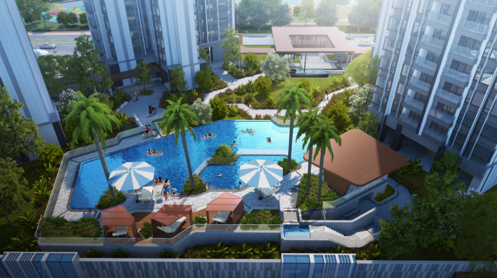 方直穀倉府總占地約5.8萬㎡,總建築面積約36萬㎡。打造城市客廳級主入口廣場,緊密連接社區和市政公園, 並特別設置10個現代簡約的球形建築,象徵著生活的十全十美。