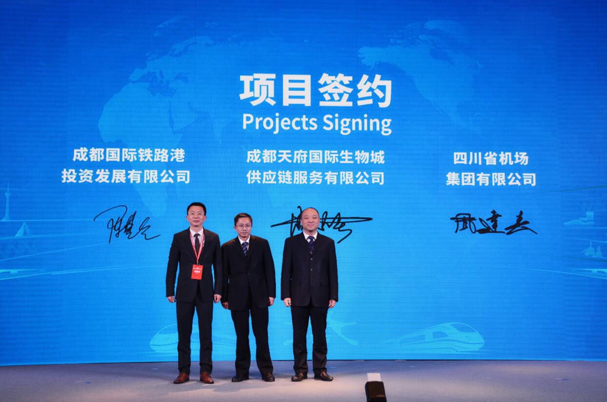 在揭牌成立當天,成都天府國際生物城供應鏈服務有限公司就在會上同成都國際鐵路港投資發展(集團)有限公司、四川省機場集團有限公司集中籤訂建設口岸藥品查驗倉儲基地的合作協議。三方將全面展開合作,共同助力成都打造成都國際生物醫藥供應鏈新樞紐。