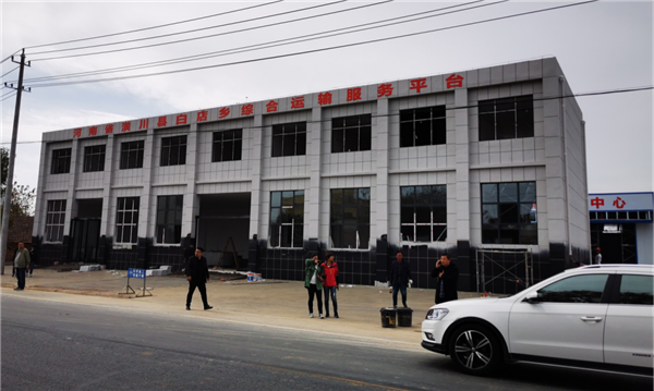 在潢川縣白店鄉綜合運輸服務平台的服務大廳里,一片繁忙的施工景象,再有一個星期,這個集物流、快遞、電商、倉儲和維修服務為一體的綜合平台就要全面投入使用了。屆時,在鄉鎮配送和村末端網點配送可進行資源共享和共同配送,基本實現從縣城到行政村下行配送的4小時達,農產品從田間地頭到到省內任何一個城市的24小時達。