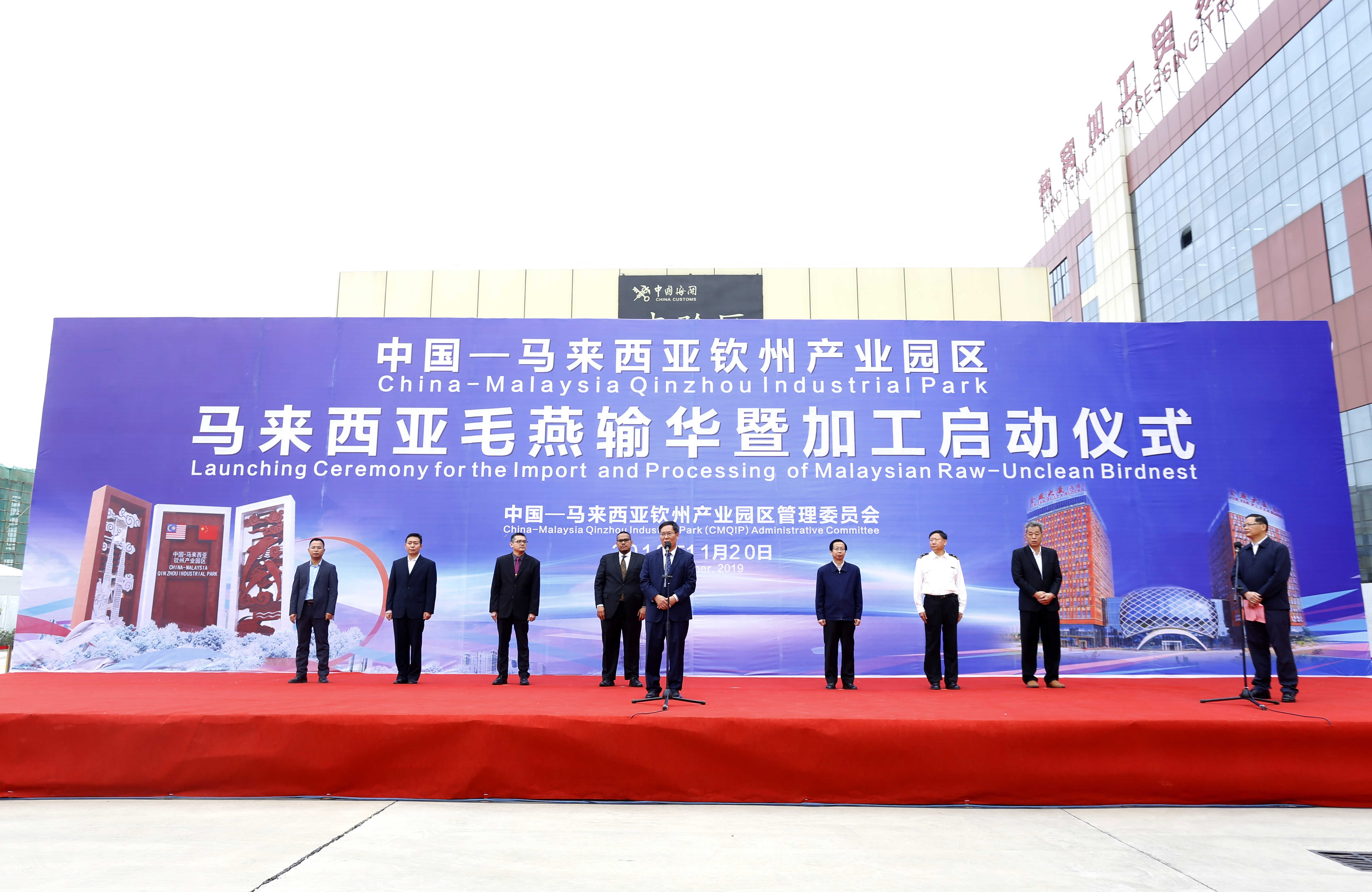 據悉,這是中國和馬來西亞於2016年11月簽訂輸華毛燕議定書後,兩國首次實現毛燕正常貿易。當天,馬來西亞毛燕輸華暨加工啟動儀式在中國—馬來西亞欽州產業園區舉行。來自馬來西亞農業與農基工業部,馬來西亞、泰國、越南、印尼等國燕窩生產企業、燕農、燕窩協會,廣西和欽州市相關部門,中馬欽州產業園區管委會和各平台公司、入園燕窩企業代表數百人參加了活動。活動結束後,領導嘉賓還參觀了海關毛燕查驗流程和毛燕加工廠房,進一步了解燕窩生產加工各個環節。