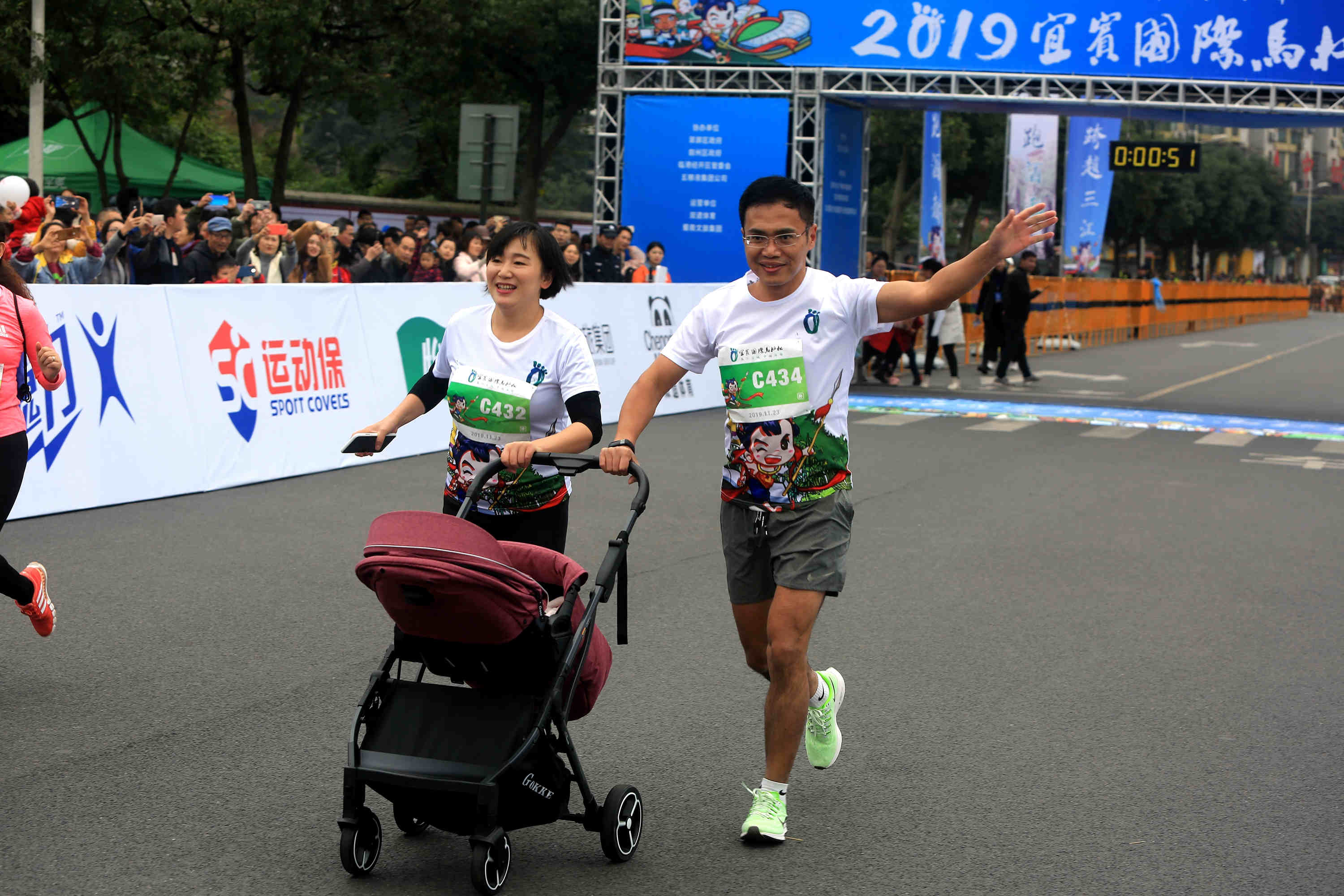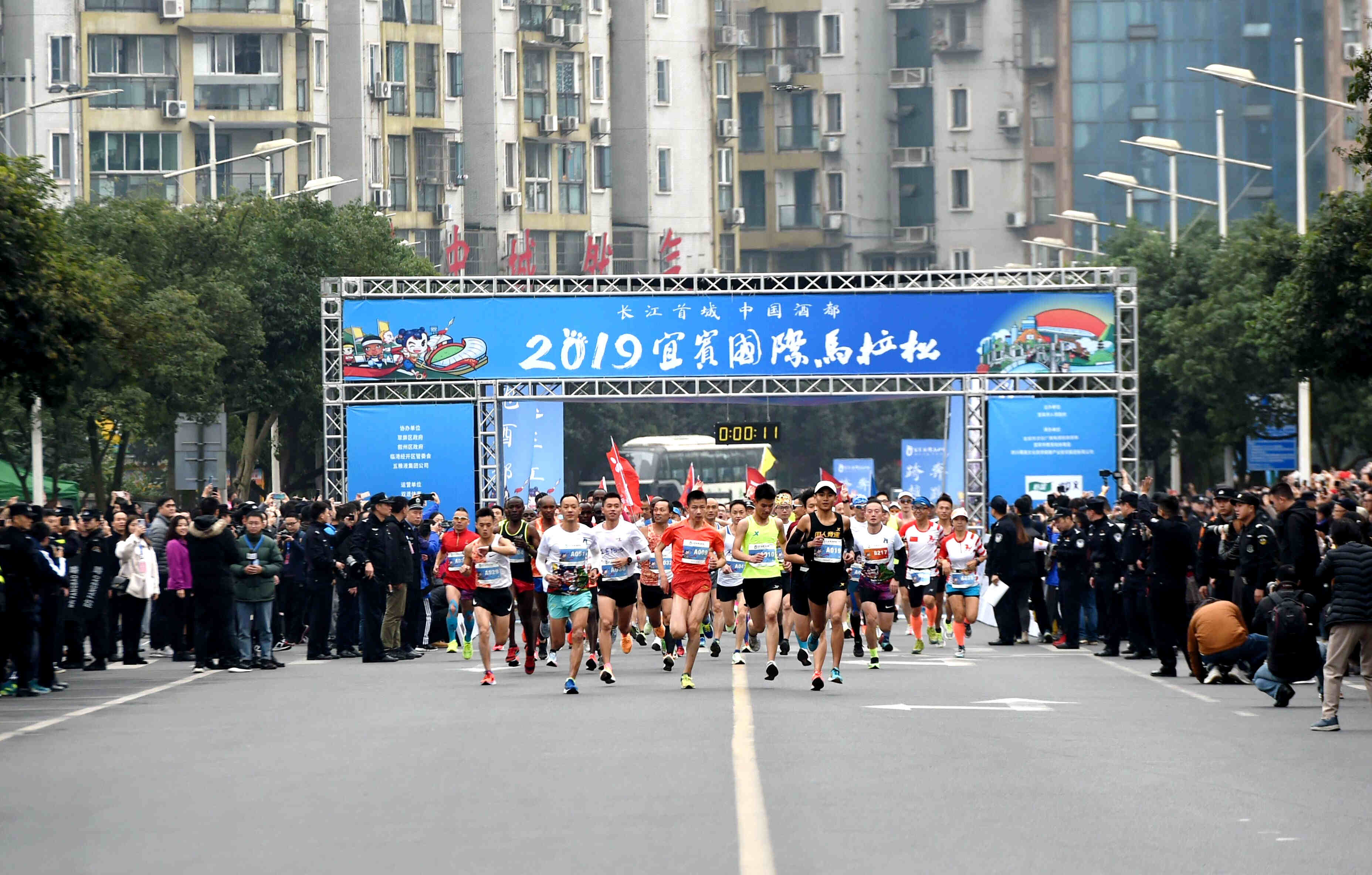 下午兩點,隨着發令槍響,參賽選手們從宜賓市體育中心廣場出發,一路沿長江而行,向著目的地奔跑。