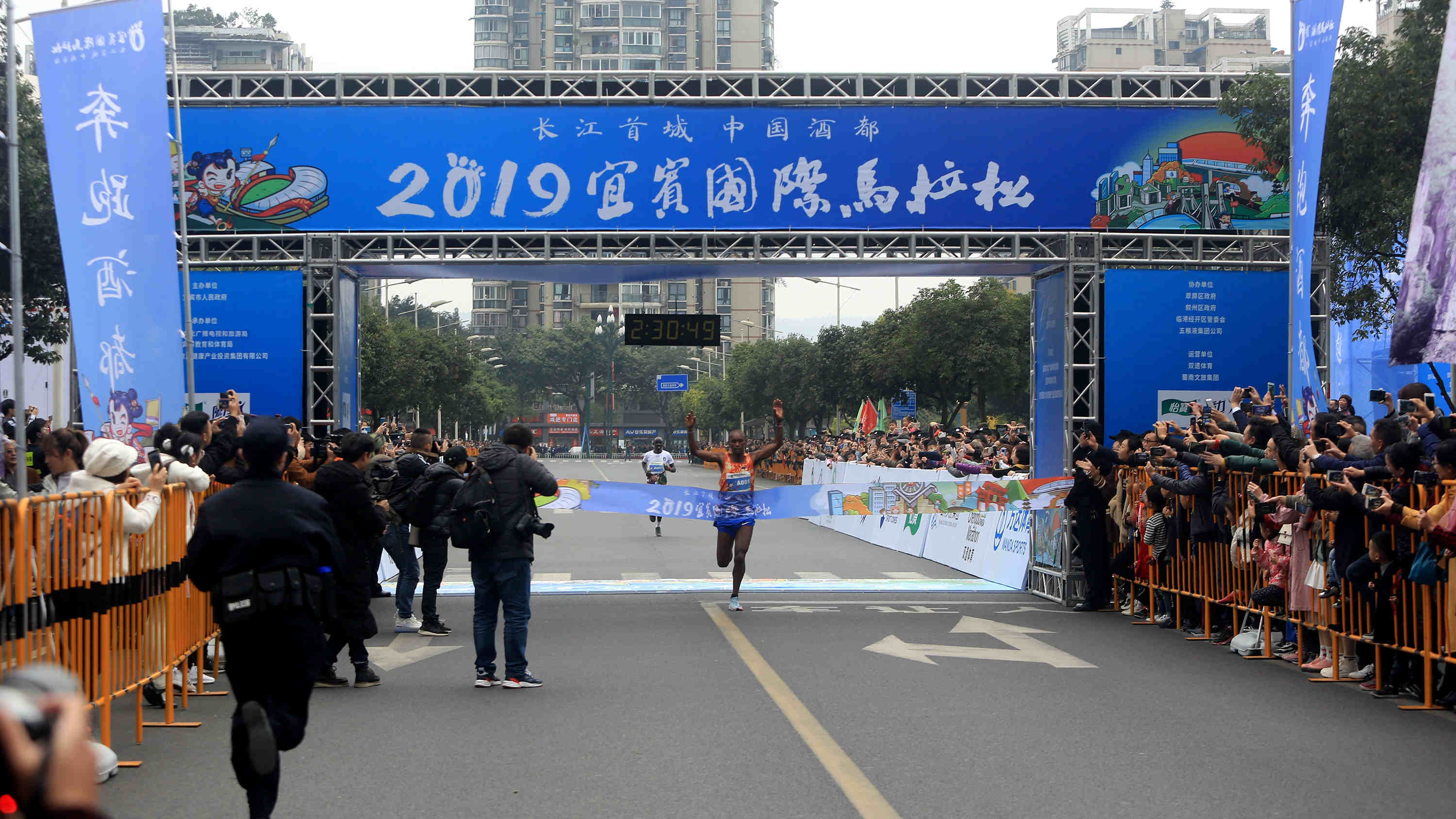 最終,來自肯雅的選手包攬了此次精英賽全馬的前三名,成績分別為:2:30:49、 2:30:52、2:32:40 ,半馬賽前三名均為中國選手,成績分別為1:32:27、1:40:40、1:40:51。