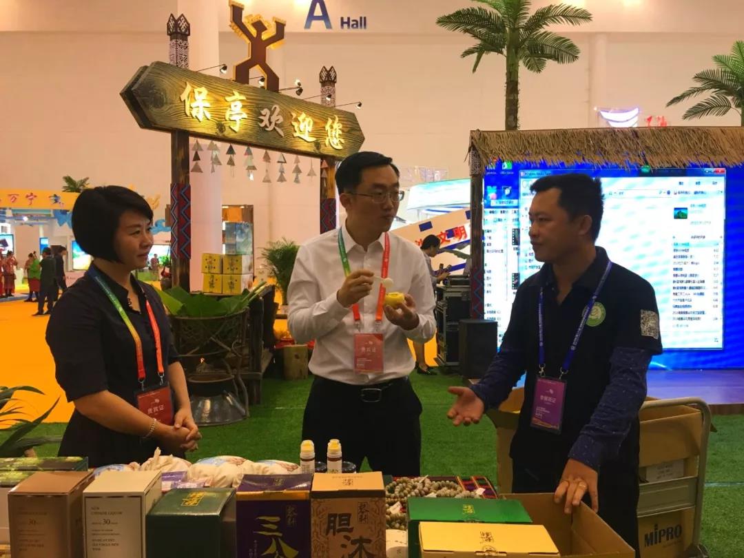 海南省人民副省長苻彩香、省旅文廳廳長孫穎對保亭縣獨具黎苗特色的展館設計予以肯定,並到展館現場詳細瞭解保亭旅遊商品開發情況。保亭縣委常委、縣政府副縣長吳垚垚在展會現場詳細瞭解椰子油、百香果、黎軒山欄酒等特色農副產品的銷售情況,並就如何做好下一步的產品開發提出了意見和建議。