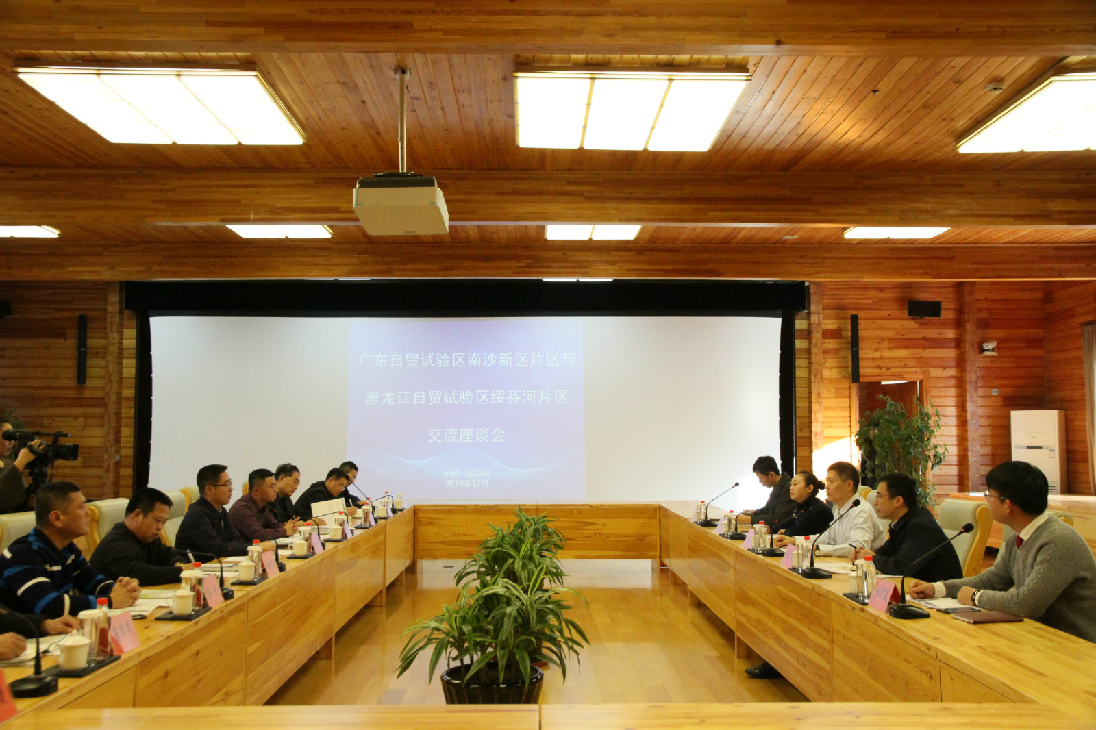 會上播放了綏芬河片區宣傳片,綏芬河片區管委會相關負責人從口岸地緣優勢、開放平台優勢、跨境產業優勢、政策疊加優勢等方面,介紹了綏芬河片區相關情況。潘玉璋介紹了南沙片區的建設創新成果和已有的成功案例。