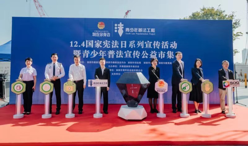 【香港商報網訊】記者 焦家志 報導: 12月1日上午,「12.4國家憲法日系列宣傳活動暨青少年普法宣傳公益市集活動」在華潤萬象天地水廣場舉行。此次活動由深圳團市委主辦,市青年社會組織聯合會具體承辦,深圳市委政法委、深圳市委依法治市辦、深圳市司法局、深圳市普法辦、深圳市教育局為指導單位,各相關單位代表共約280餘人出席活動,當天近6000名市民參加市集活動。