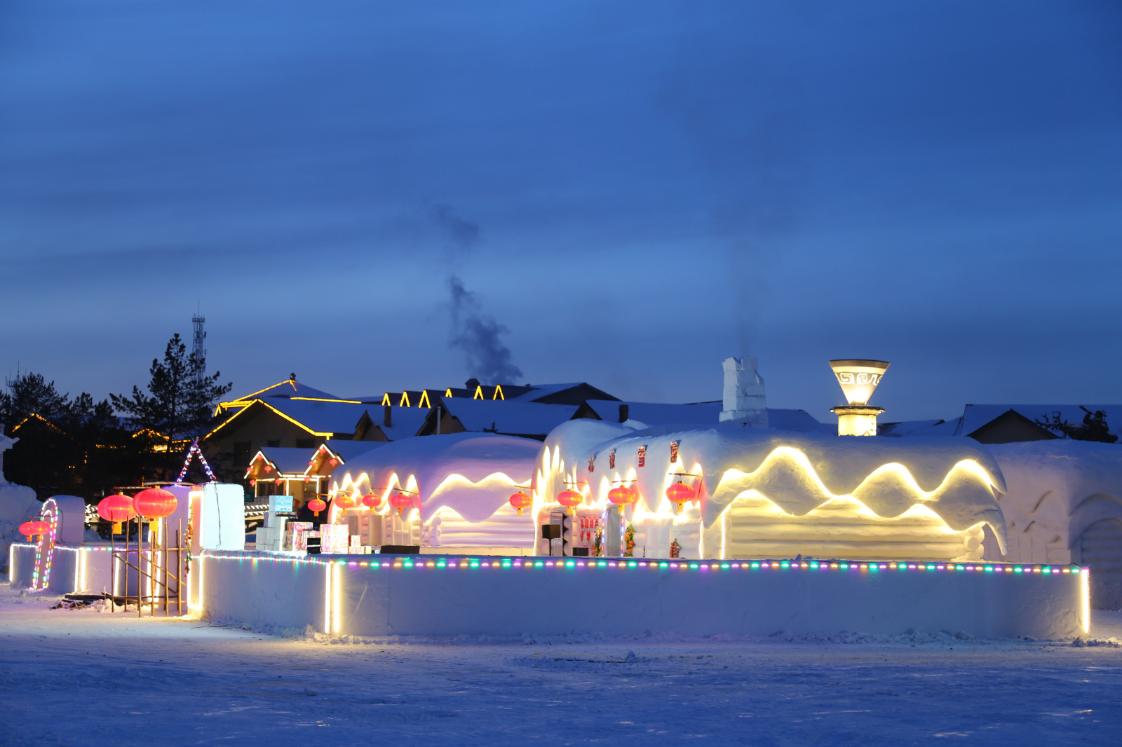 每年春季冰雪旅館會融化消失,到了冬季嶄新的冰雪旅館會再次建造起來。在冰雪旅館外,還有展示北極獨特氣候特徵的巨型溫度計,以及北極村民宿風格的雪屋和充滿樂趣的冰迷宮,給予遊客們豐富多彩冰雪體驗。(王景陽 張曉磊 王鐵雙/攝)