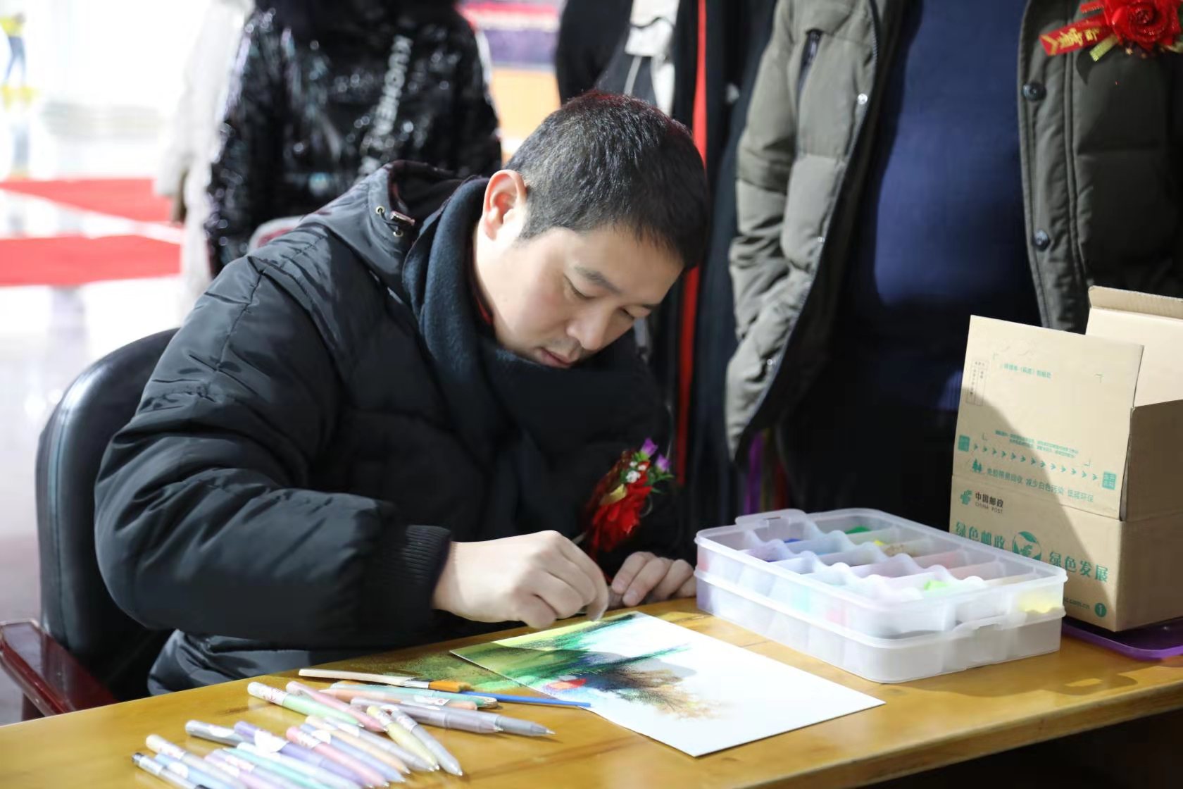 開幕式由加格達奇區區委常委、宣傳部長、統戰部長呂延廷主持,區委副書記李寧致辭。李寧在致辭中指出,文化是一個城市的內在靈魂,更是提升城市品質,推動城市發展的不竭動力。近年來,加格達奇區區委、區政府大力發展文化事業,打造了一批有智慧有才情、敢擔當敢創新、可信賴可依靠的文藝工作者隊伍,創作出了大量優秀文藝作品。尤其是加格達奇生態優良,文化豐厚,民風淳樸,獨有的資源優勢為沙藝創作提供了絕佳的藝術素材和創作靈感!希望廣大藝術工作者繼續主動承擔文化自覺與責任,在藉助展會平台,近距離感受固彩沙藝魅力的同時,更要把握難得的學習交流機會,向呂傑老師學習,向全國各地的優秀沙藝作者學習,潛心鑽研,刻苦創作,努力生產更多更好的沙畫藝術佳作,努力讓沙畫藝術在加格達奇進一步紮根繁榮、發展壯大,為促進全區經濟社會全面轉型發展,提供更加有力的文化支撐與貢獻。