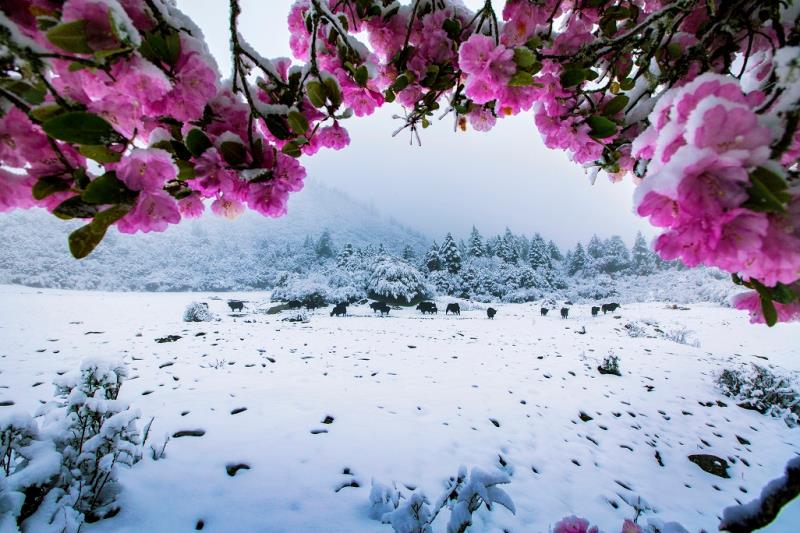 “冬季陽光資源豐沛”是亮點之五。甘孜是一個沒有霧霾的地方,冬季藍天白雲、陽光明媚、空氣清新、白雪皚皚。這裡的雪山在冬春季節更加巍峨壯觀,日照金山、雲海佛光等奇觀屢屢出現,冬春季節能看見貢嘎山、亞丁三神山等著名雪山全貌的幾率明顯高於夏、秋兩季。每到初春,山上的冰雪尚未消融,康定木蘭、高山杜鵑就頂風破雪,傲然開放,在冰雪寒風中堅強挺立,顯出勃勃生機;山下梨花、油菜花、報春花則爭香鬥豔,成為早春最壯麗的花海景觀。同時,溫暖的陽光在大渡河流域的河谷中投射在森林、田園、寨樓、古碉上,形成斑駁陸離的光影奇觀,是都市人享受康養和攝影創作的天堂。