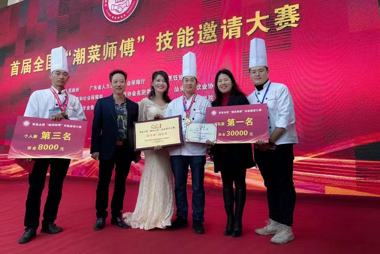 【香港商報網訊】記者 陳績盛 報導:由中國烹飪協會、廣東省人力資源和社會保障廳、汕頭市人民政府主辦,汕頭市人力資源和社會保障局、汕頭市餐飲業協會等單位承辦的首屆全國「潮菜師傅」技能邀請大賽於7日至8日在廣東省粵東技師學院舉行。全國共有13個省、市的30支隊伍參加團體賽,60名選手參加個人賽。在為期2天的大賽中,來自全國各地潮菜師傅紛紛拿出高超廚藝及看家本領和絕招角逐賽場,經過激烈角逐,共決出團體特金獎9個、金獎12個、銀獎9個;獲得個人特金獎18個、金獎24個、銀獎18個。一場高水平的潮菜烹飪界大賽,廚師們認真製作出精美的菜肴作品,充分展現潮菜的獨特魅力,令人嘆為觀止。