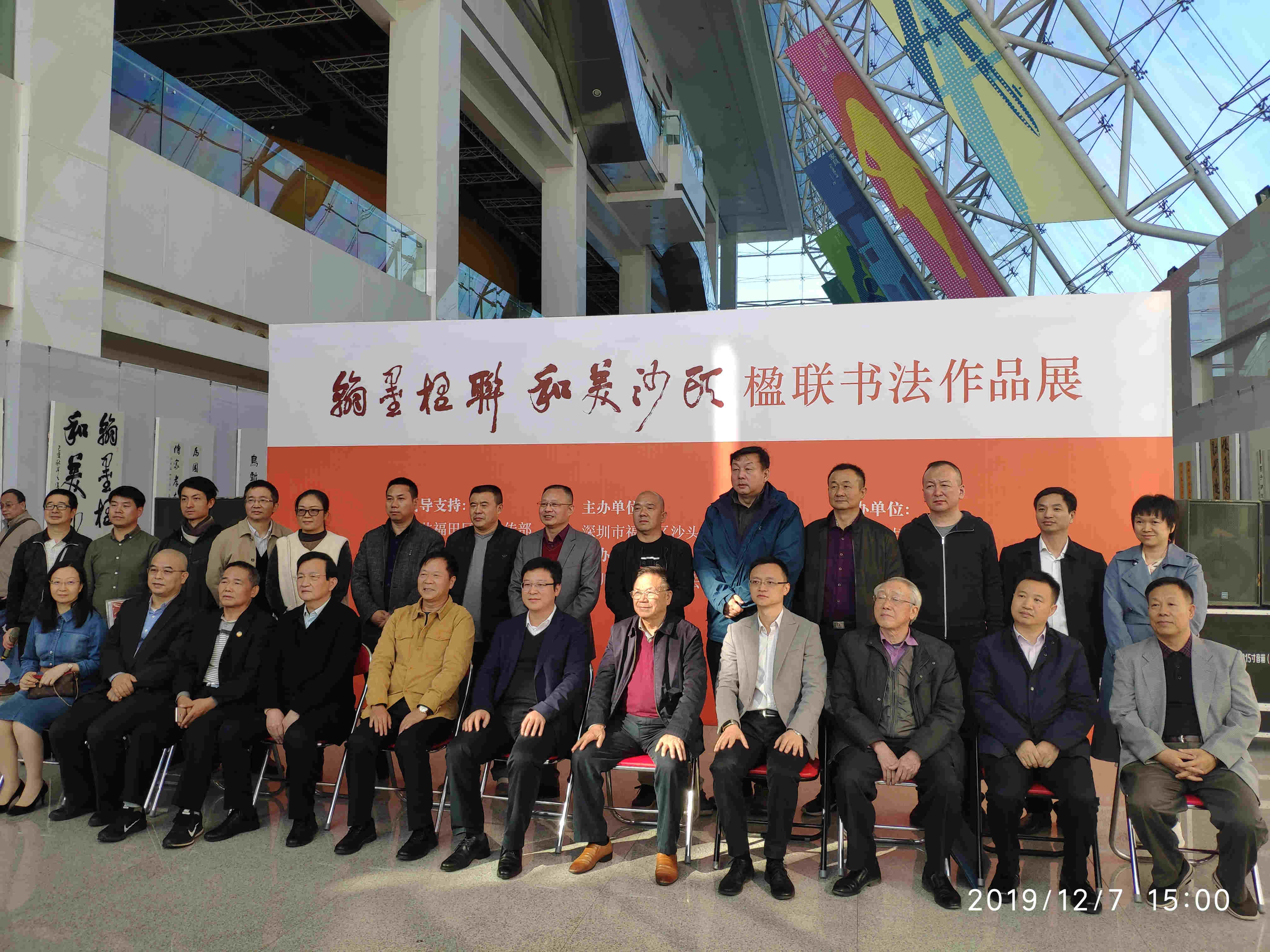 【香港商報網訊】記者 蘇偉 報導:由福田區委宣傳部、福田區文聯指導支持,深圳市福田區沙頭街道辦事處主辦,深圳市福田區書法家協會承辦,深圳市書法院、深圳市楹聯學會、深圳市青年書法家協會協辦的“翰墨楹聯 · 和美沙頭—楹聯書法展”於2019年12月7日下午在深圳市民中心圓滿舉行。此次展覽由趙永金擔任策展人,開幕儀式由福田書法家協會副主席、深圳技術大學書法藝術研究所所長徐磊副教授主持。