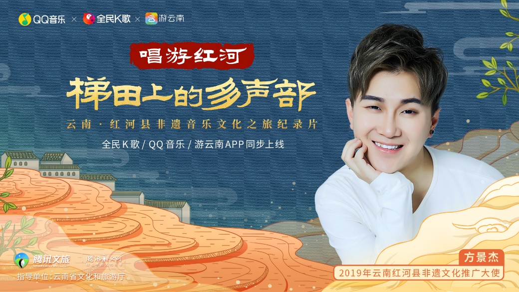 為期4天3晚的【唱遊紅河 梯田上的多聲部】非遺音樂文化之旅中,「2019年雲南紅河縣非遺文化推廣大使」方景傑帶領眾多「游雲南玩咖」,一同現身雲上原生態音樂會,聆聽哈尼族的古韻天籟;探訪百年建築馬幫古城,品嘗僑鄉十二味;「馬背明珠」上萬人樂作舞,共慶哈尼十月年。旅程結束,唱遊路途還被濃縮成《唱遊紅河 梯田上的多聲部》紀錄片,於12月6日在全民K歌、游雲南App上線,通過這條唱遊紀錄片,更多人有機會體驗到雲南紅河縣非遺音樂文化的魅力。