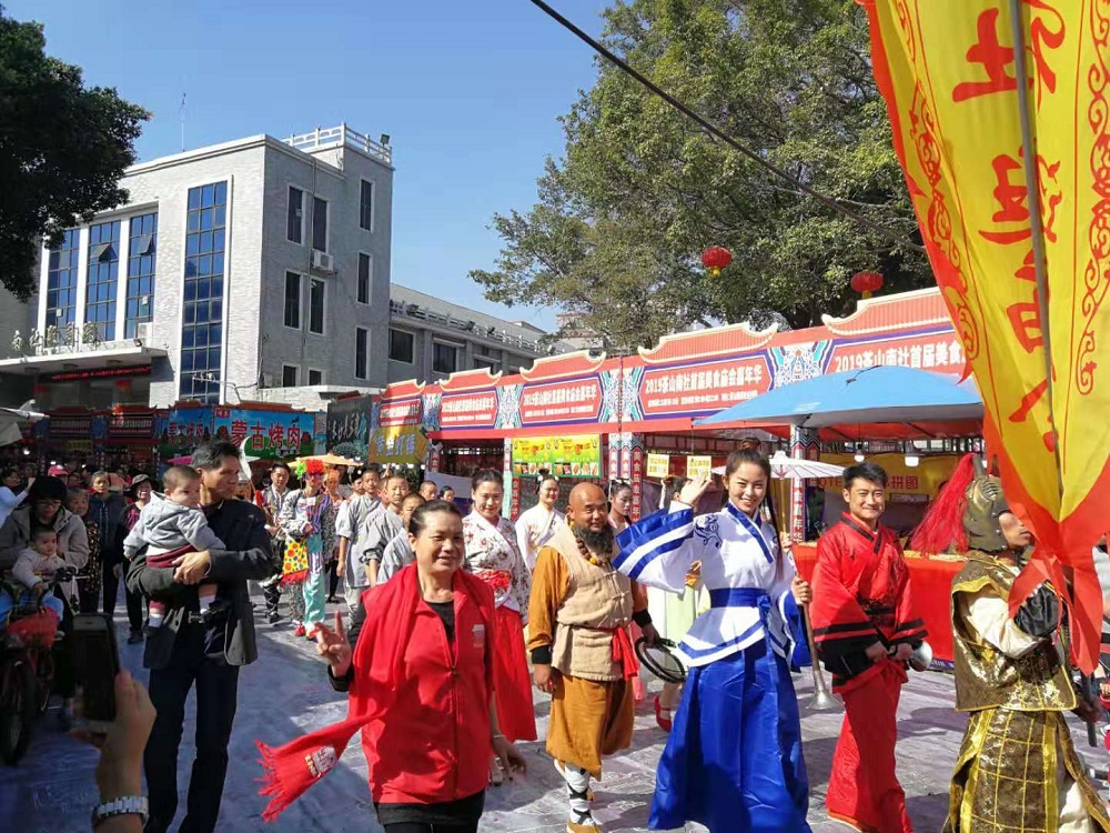 巡遊隊伍主要由醒獅隊、曲藝隊、演藝隊、舞蹈隊、太極隊、少年漢服隊等方陣組成,陣容龐大,氣勢威武。巡遊途中鑼鼓陣陣,鞭炮齊鳴,深受村民和遊客歡迎。據了解,今屆「忠孝文化節」由歷屆的7天延長至一個月(2019年12月8日至2020年1月7日,共30天。),跨越元旦新年。期間,以南社古村為大舞台,安排了55名專業演員駐場依序演出;民俗活動表演、小劇情演出、主題互動等活動同步展開;開設「南社印象」晚會與古村夜遊,打造古村中活態「清明上河圖」。