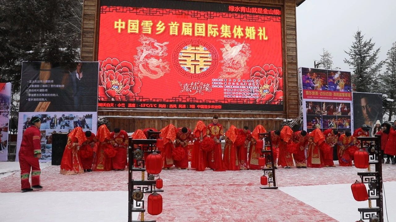 中國雪鄉首屆國際集體婚禮現場