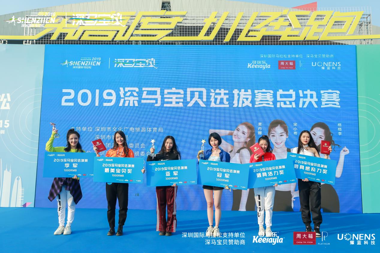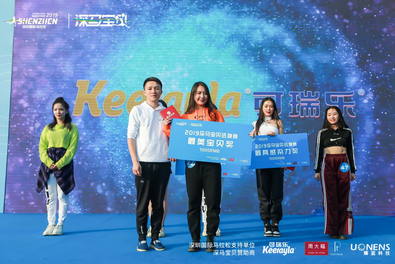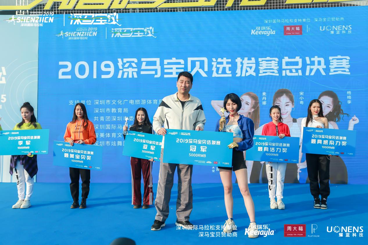 萬眾矚目之下,深圳市文化廣電旅遊體育局 體產處副調研員宋裴、中國第一啦啦寶貝、炫舞團體娛文化創始人郭佳媛、智美體育集團賽事總監符鴻霖分別為冠、亞、季軍頒獎。新西蘭進口嬰幼兒奶粉可瑞樂品牌總監曾永華先生、 耀藍科技銷售總經理張國輝先生 ,周大福商品管理部\西鉑金科總經理裴翔先生分別為獲得 “最具感染力”的選手、獲得 “最具活力獎”的選手以及獲得“最美深馬寶貝”的選手頒獎。這是屬於所有深馬寶貝的高光時刻。深馬日當天,深馬寶貝們將在深馬起點、終點及頒獎典禮的舞臺上進行表演,向來自世界各地3萬名選手及近百家權威媒體、數萬名市民觀眾展現自己,詮釋“深馬寶貝”的風采!