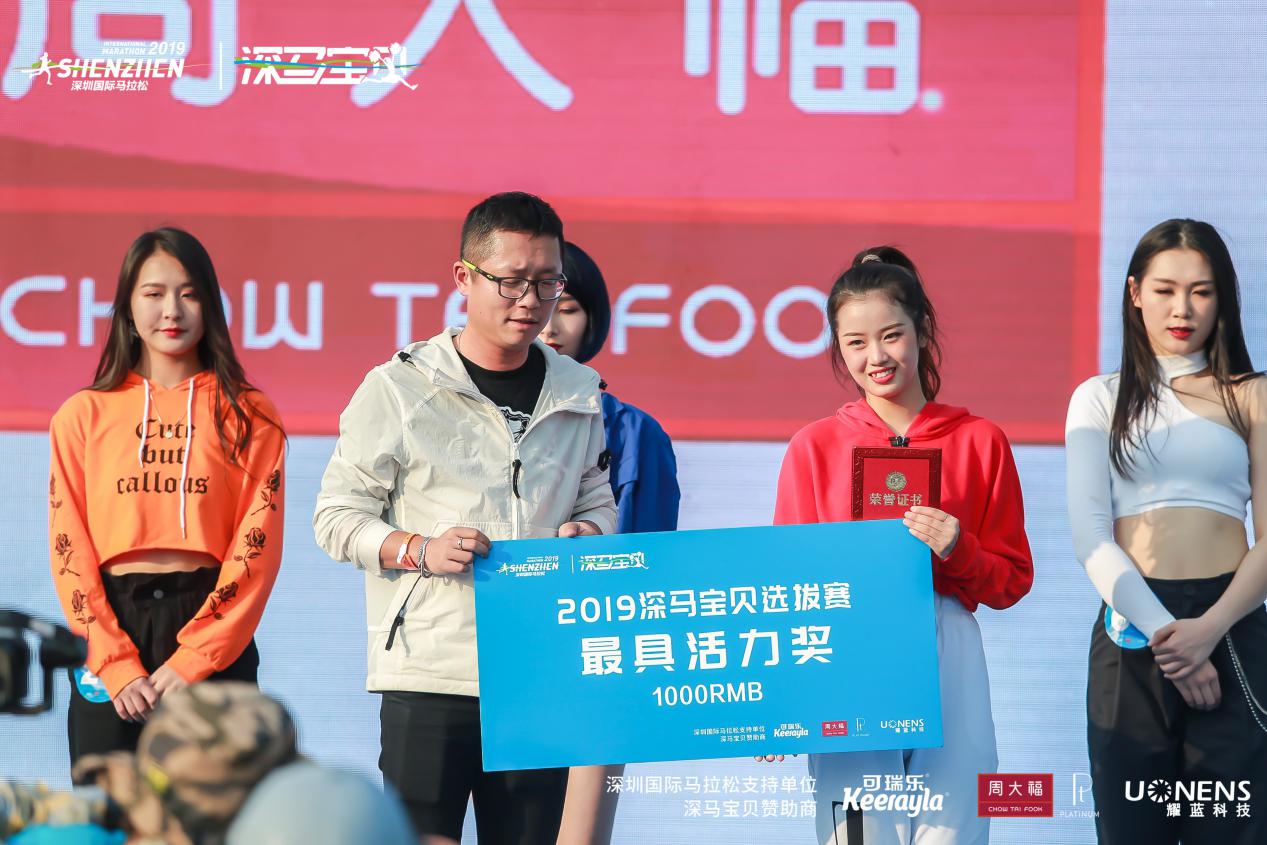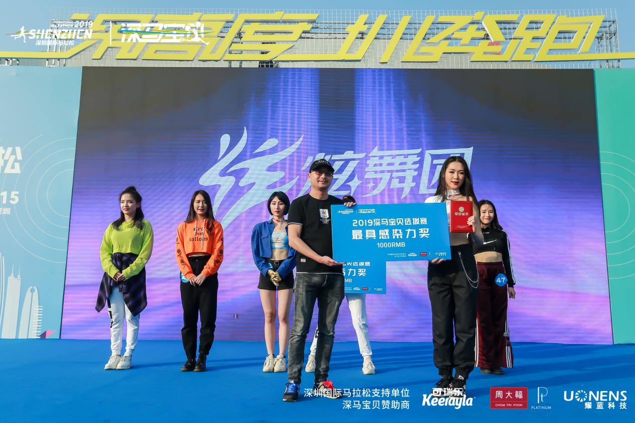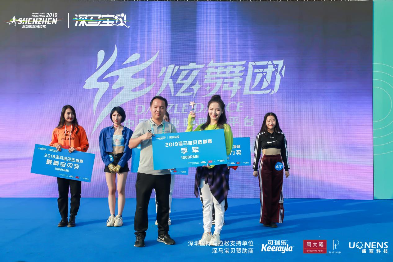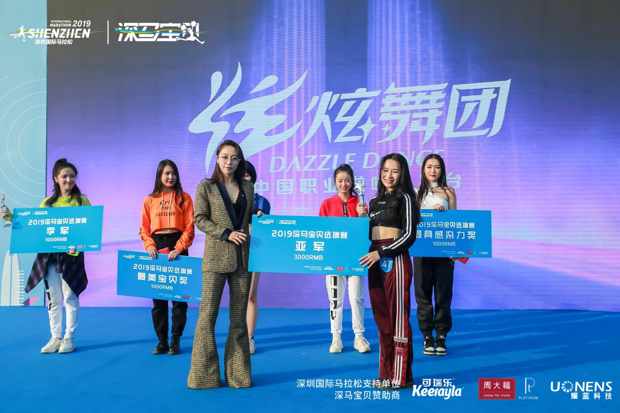 萬眾矚目之下,深圳市文化廣電旅遊體育局 體產處副調研員宋裴、中國第一啦啦寶貝、炫舞團體娛文化創始人郭佳媛、智美體育集團賽事總監符鴻霖分別為冠、亞、季軍頒獎。新西蘭進口嬰幼兒奶粉可瑞樂品牌總監曾永華先生、 耀藍科技銷售總經理張國輝先生 ,周大福商品管理部\西鉑金科總經理裴翔先生分別為獲得 “最具感染力”的選手、獲得 “最具活力獎”的選手以及獲得“最美深馬寶貝”的選手頒獎。這是屬於所有深馬寶貝的高光時刻。深馬日當天,深馬寶貝們將在深馬起點、終點及頒獎典禮的舞臺上進行表演,向來自世界各地3萬名選手及近百家權威媒體、數萬名市民觀眾展現自己,詮釋“深馬寶貝”的風采!