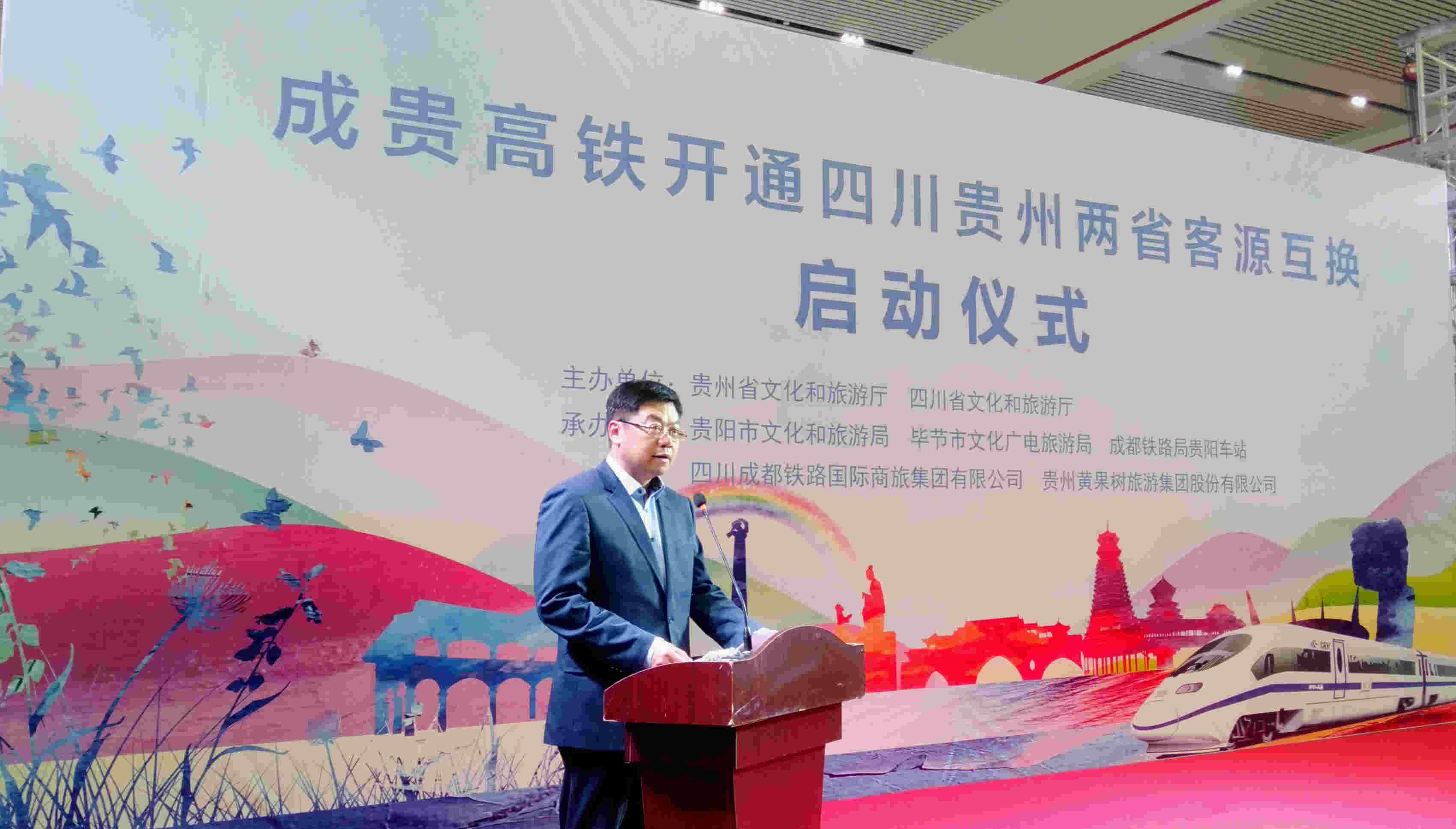 當天啟動儀式上,貴州省文化旅遊廳副廳長袁偉在致辭說,近年來,貴州省緊緊圍繞全省綜合交通運輸體系建設,把完善提升旅遊交通服務作為全省構建「快旅慢游」體系和促進旅遊轉型升級的重要抓手。充分發揮高鐵的骨幹支撐作用,以提高旅遊交通的綜合服務能力為重點,大力開發旅遊交通產品,依託快速交通優化旅遊產品業態布局,把景點連成線路,線路建成產品,以「車窗風景線·多彩貴州游」為主題,推出高鐵時代特色旅遊產品,加快開發提升快旅慢游產品體系,形成覆蓋全省、帶動全域、延伸周邊的休閑度假精品線路,讓遊客盡享多彩貴州之美。
