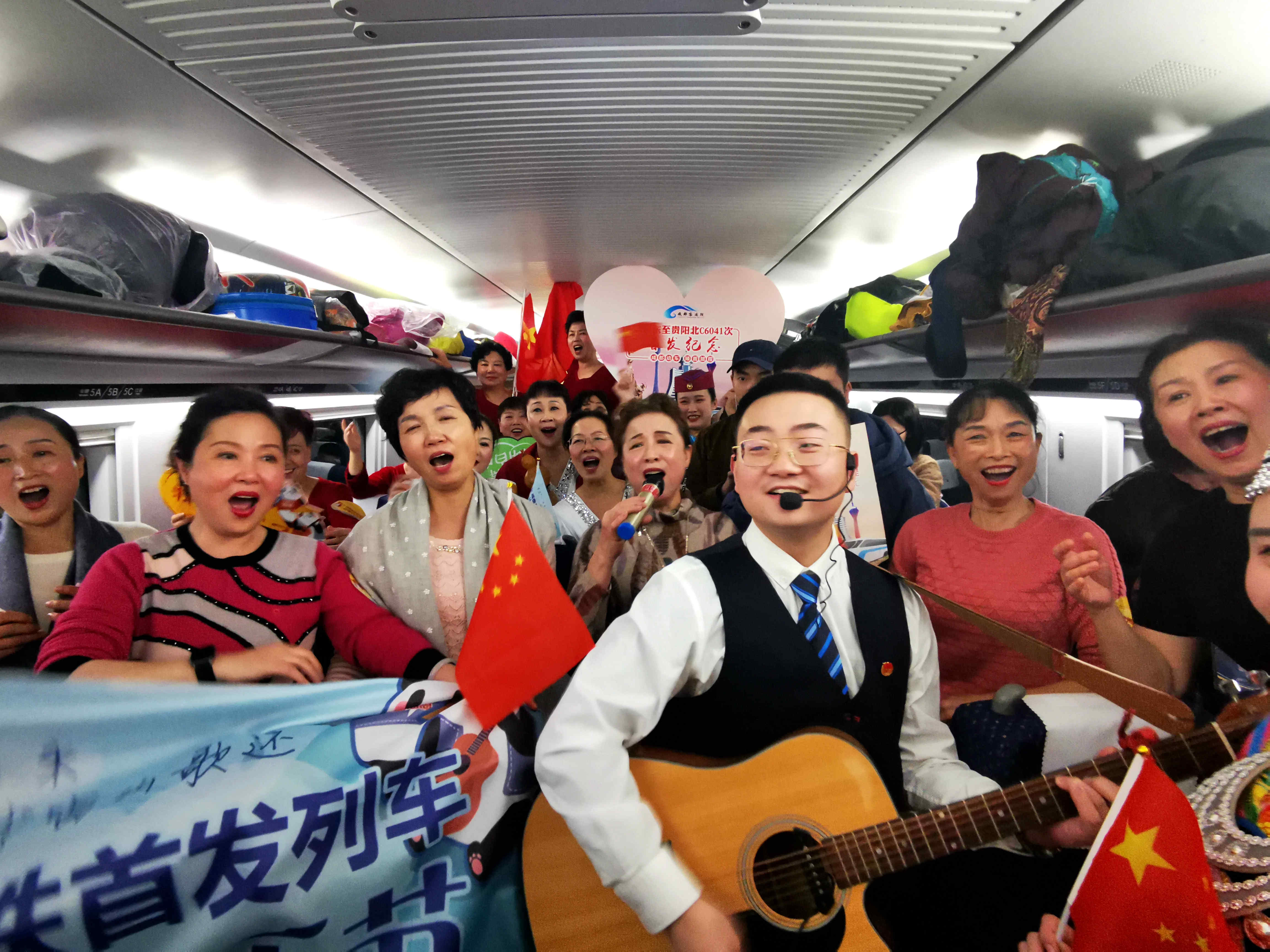 列車員彈唱《我和我的祖國》、《成都》(鄧燁 攝)