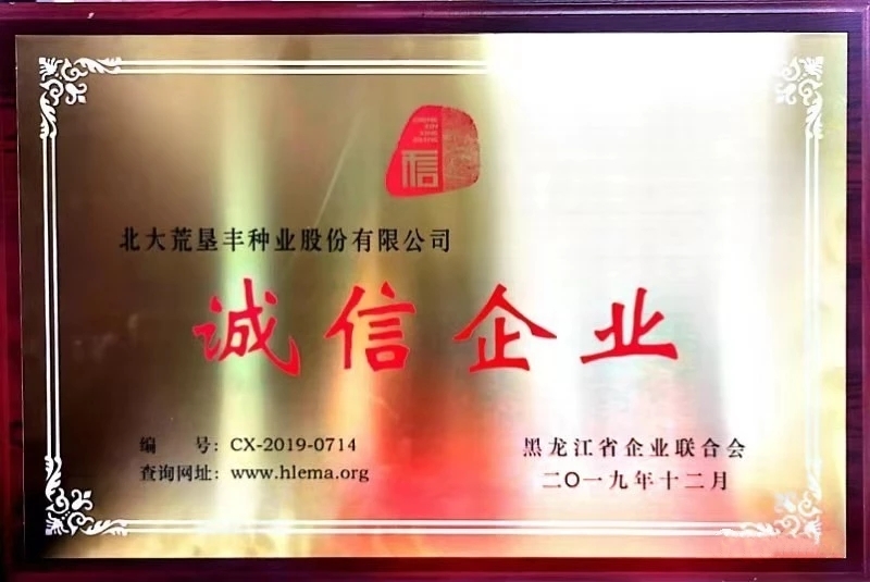 【香港商報網訊】2019年12月,北大荒墾豐種業股份有限公司獲得黑龍江省企業聯合會頒發的「黑龍江省誠信企業」榮譽稱號。