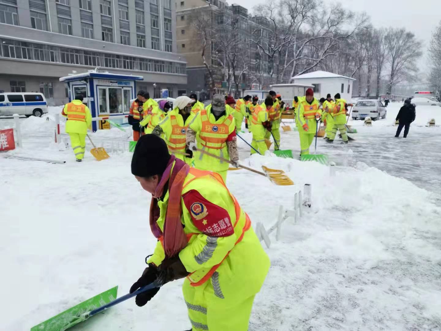 降雪後,平房區各清雪單位採取清雪滾刷車、鏟車等清雪作業機械及人工輔助相結合的循環清雪作業模式,重點對城區主幹街路、公交站台周邊、上下坡路、十字路口等處進行循環清掃,避免浮雪壓實形成冰殼,影響車輛和市民出行。同時,對平房公園、天池丁香園及各個公園遊園主廣場、主道路及出入口進行全面清掃,確保遊人通行安全。夜間清冰雪工作採取「人歇機不歇」的方式科學作業,合理調配人員班次,保障環衛工人休息和餐食。