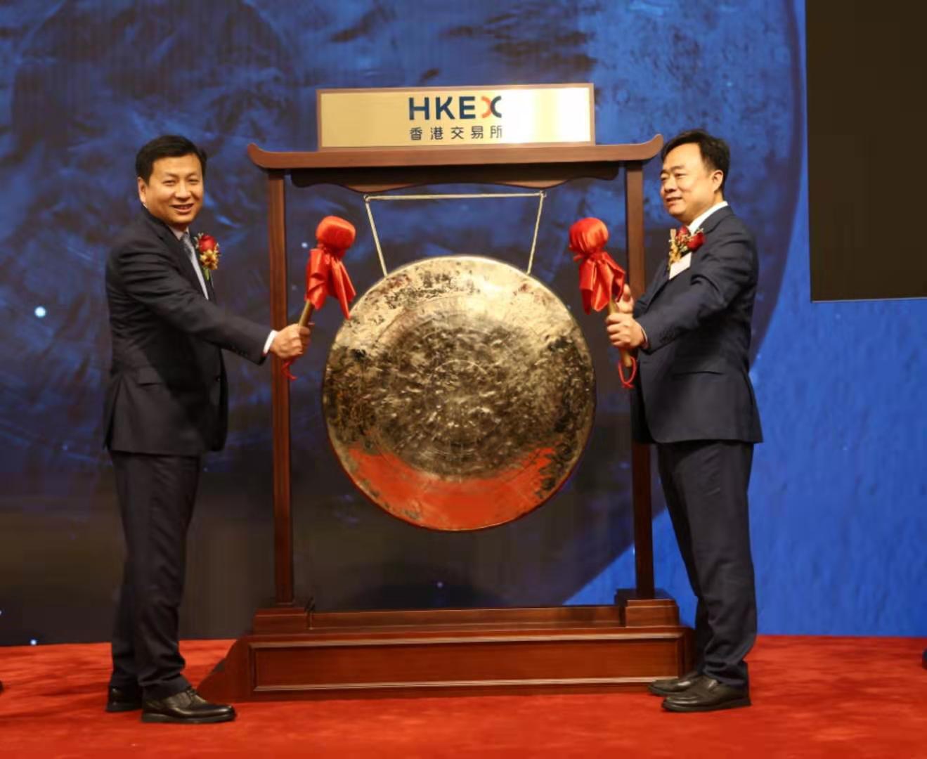 濟南市副市長孫斌,平陰縣委書記楊旭東,平陰縣經濟開發區管委會主任范嘉池,和濟南邁科管業董事長孔令磊、總經理郭雷等一行企業高管,在香港聯交所共同見證邁科管業首日上市。