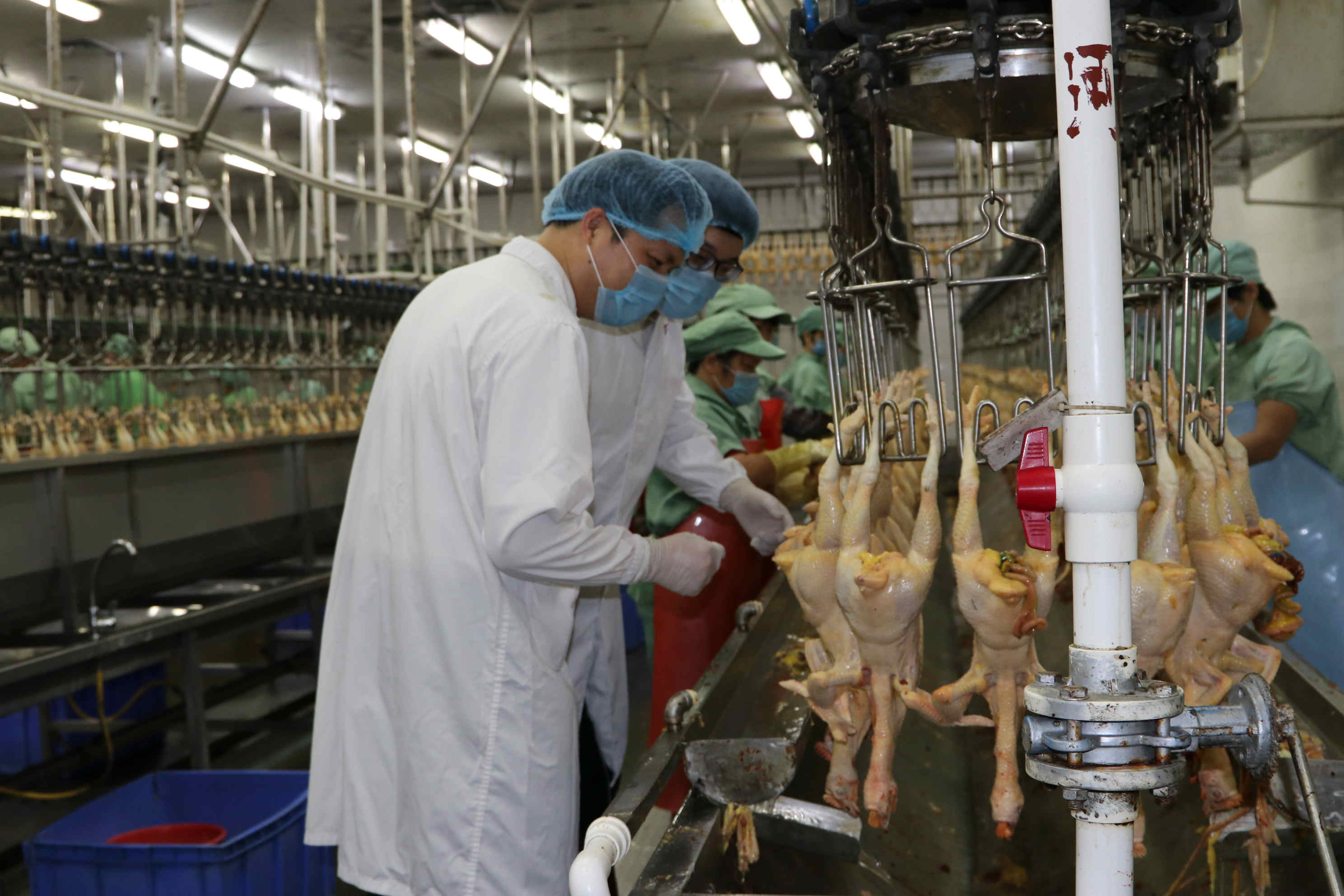 230多公里外的廣東雲浮,每天凌晨,溫氏佳潤食品有限公司的車間異常繁忙,肉質鮮美、質量可靠的冰鮮雞、熟雞在廣州海關所屬羅定海關關員的把關下,從這裡裝車運往澳門,確保澳門市民能在當天吃上「放心雞」。
