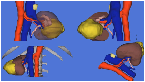 沈阿姨、夏醫生入院後都完善了術前檢查。綜合腎臟腫瘤的位置、大小、深度及血管情況後,王東文教授給他們制定了 3D 腹腔鏡根治性腎切除手術方案。